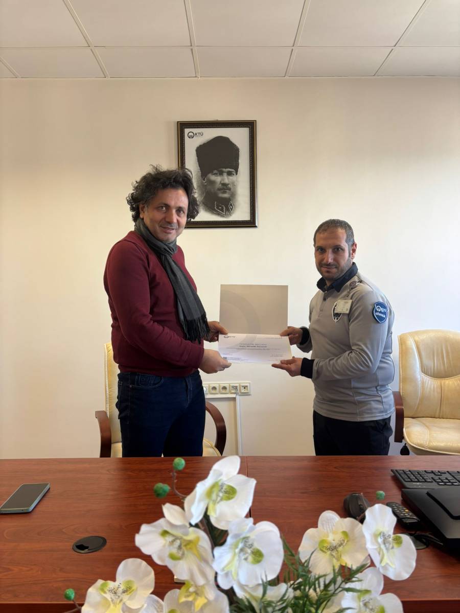 Stratejik plan hazırlık sürecinde, en fazla veri girişi sağlayarak planlama çalışmalarına önemli katkı sunan Mülkiyet Koruma ve Güvenlik Bölümü' ne teşekkür belgesi takdim edildi.