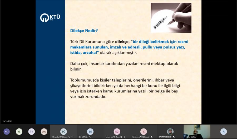 Memur Akademisi'nde bu hafta, "Dilekçe Hakkı ve Bu Hakkın Kullanılması, Bilgi Edinme Kanunu" konusu 16 Haziran 2021 Çarşamba günü 10.30-12.00 saatleri arasında, Av. Çetinkaya GÜMRÜKÇÜOĞLU tarafından online olarak işlendi ve sorular cevaplandırıldı.