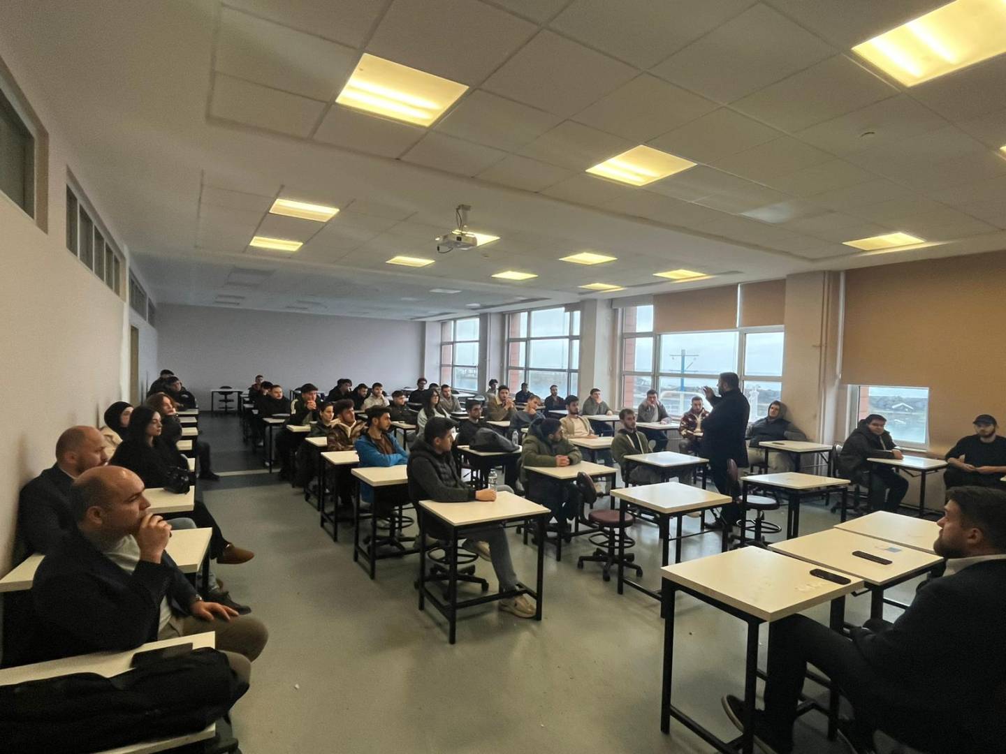 19.11.2025 tarihli ve 05 sayılı Birim Danışma Kurulu toplantısında alınan karar gereğince, sektör temsilcilerinin ilgili derslere katılım sağlaması, başta tersane bölgesindeki firmalar olmak üzere çeşitli işletmelerle staj protokollerinin imzalanması ve öğrencilerimizin bu işletmelere yönlendirilmesi konularında iş birliği yapılması kararlaştırılmıştır. Bu doğrultuda, Meslek Yüksekokulumuz Elektronik ve Otomasyon bölümü bünyesinde yer alan Mekatronik Programları öğrencilerimizin mesleki bilgi ve becerilerinin geliştirilmesi, mezuniyet sonrası denizcilik sektöründeki iş imkanları, çalışma koşulları ve sosyal yaşam olanakları hakkında; Atomar Denizcilik Şirketinden Teknik Müdür Utku TÜREDİ tarafından Mekatronik Programımız “AMEK2007 Araştırma Yöntem ve Teknikleri” dersi içerisinde sunum ve eğitim verilmiştir. 17.12.2025