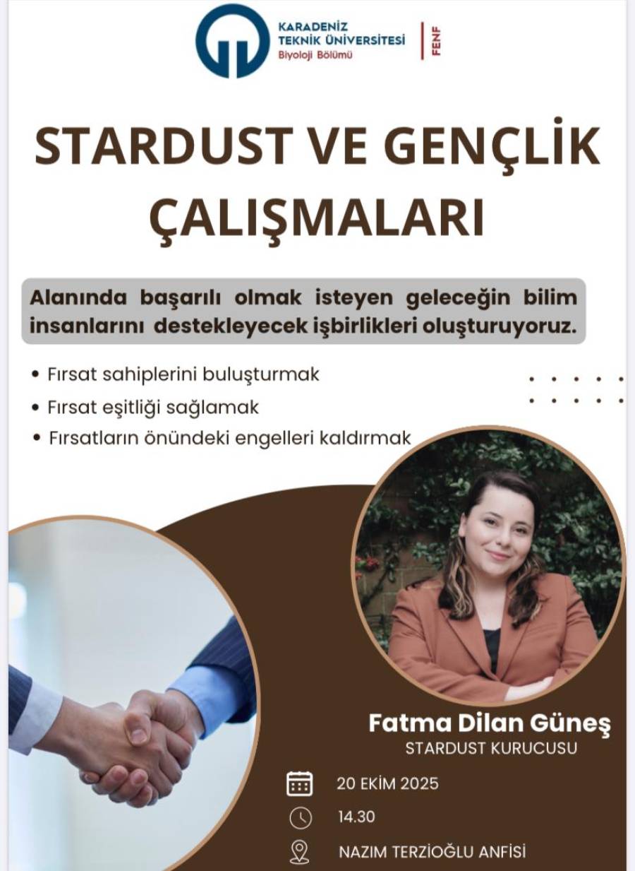 Stardust Ve Gençlik Çalışmaları konulu etkinlik en Fakültesi, Nazım Terzioğlu Amfisinde 20.10.2025 tarihinde saat 14.30'da gerçekleştirilecektir.