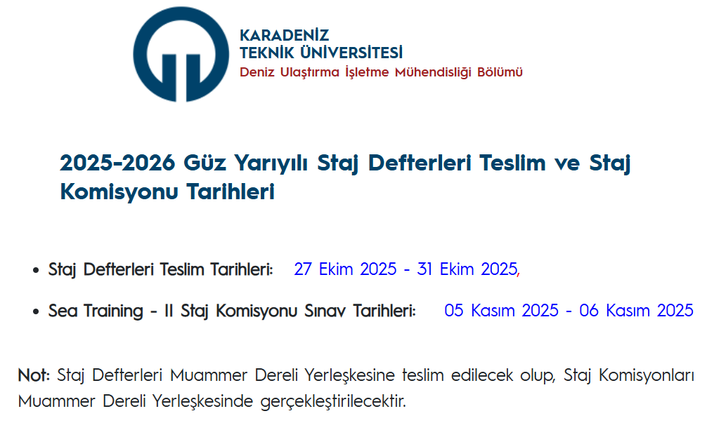 Karadeniz Teknik Üniversitesi Sürmene Deniz Bilimleri Fakültesi Deniz Ulaştırma İşletme Mühendisliği 2023-2024 Eğitim Öğretim yılı mezuniyet töreni 05 Temmuz 2024 Cuma gerçekleştirilmiştir