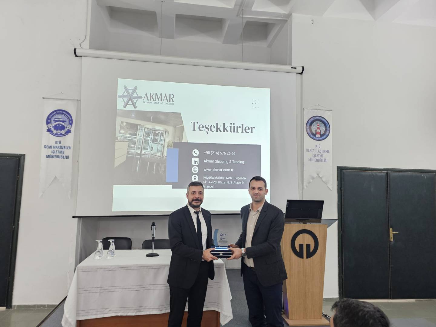 Etkinliğe, Akmar Denizcilik Personel Müdürü Tuna Pişmişoğlu katılım sağladı. Gerçekleştirilen sunumda firma tanıtımı yapılırken, filoda devam eden genişletme çalışmaları ve istihdam süreçleri hakkında bilgi paylaşıldı. Etkinlik, konuşmacıya plaket takdim edilmesiyle tamamlandı.