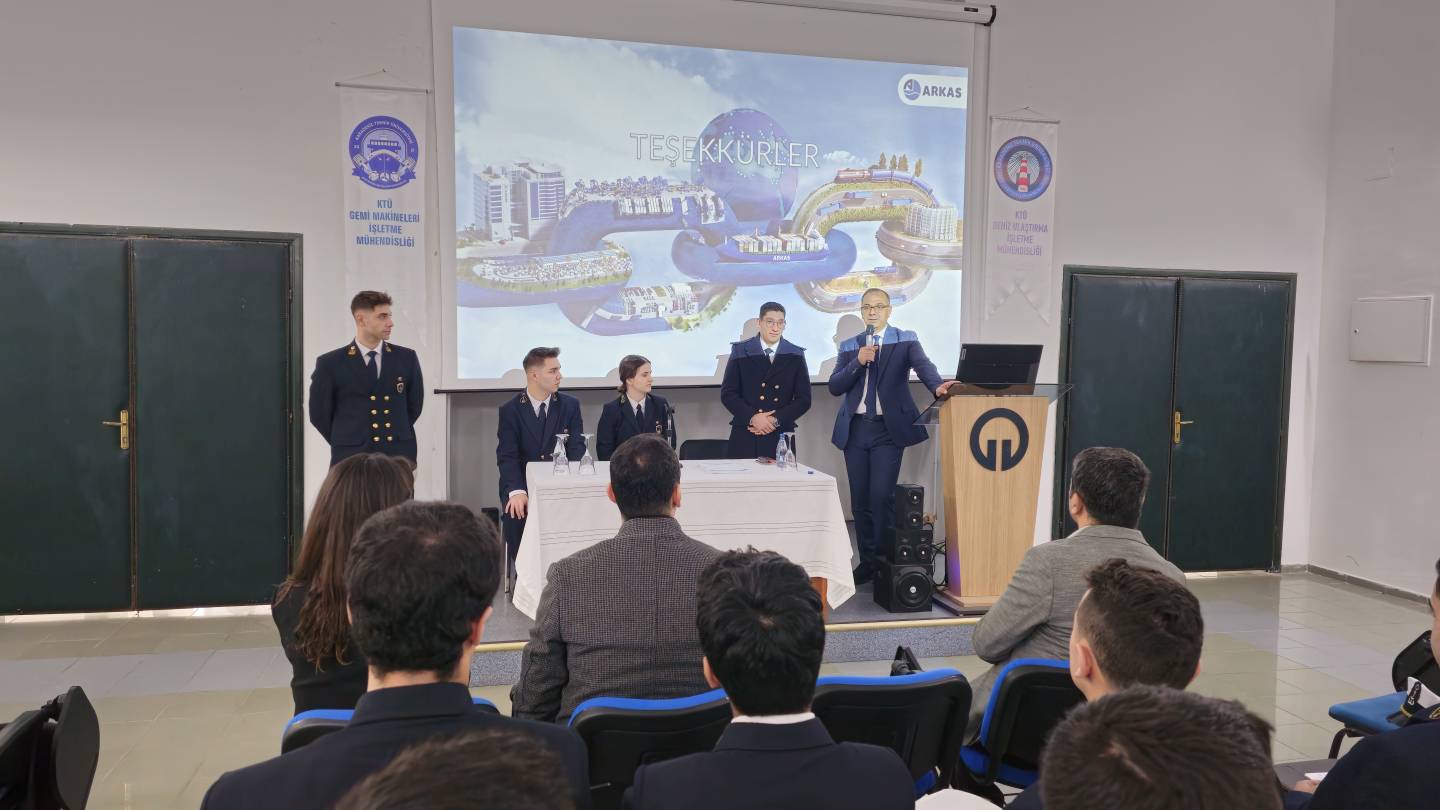 Etkinliğe, Arkas Denizcilik Personel Müdürü Ferit Gökdeniz katıldı. Sunumda, Arkas Denizcilik’in tarihçesi aktarılırken, filoda yürütülen genişletme çalışmaları ve geleceğe yönelik planlar hakkında öğrencilerimize bilgi verildi. Etkinlik, plaket takdimi ile tamamlandı.