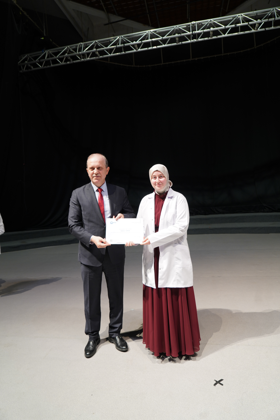 Törende ayrıca, 2025 YKS’de fakültemize en yüksek puanla yerleşen Sedanur ÇERGEL’e tebrik belgesi ve hediyesi Rektörümüz Prof. Dr. Hamdullah ÇUVALCI tarafından takdim edildi. Program, öğretim üyeleri eşliğinde Dönem I öğrencilerinin beyaz önlüklerini giymesi ve toplu hatıra fotoğrafı çekimiyle sona erdi.