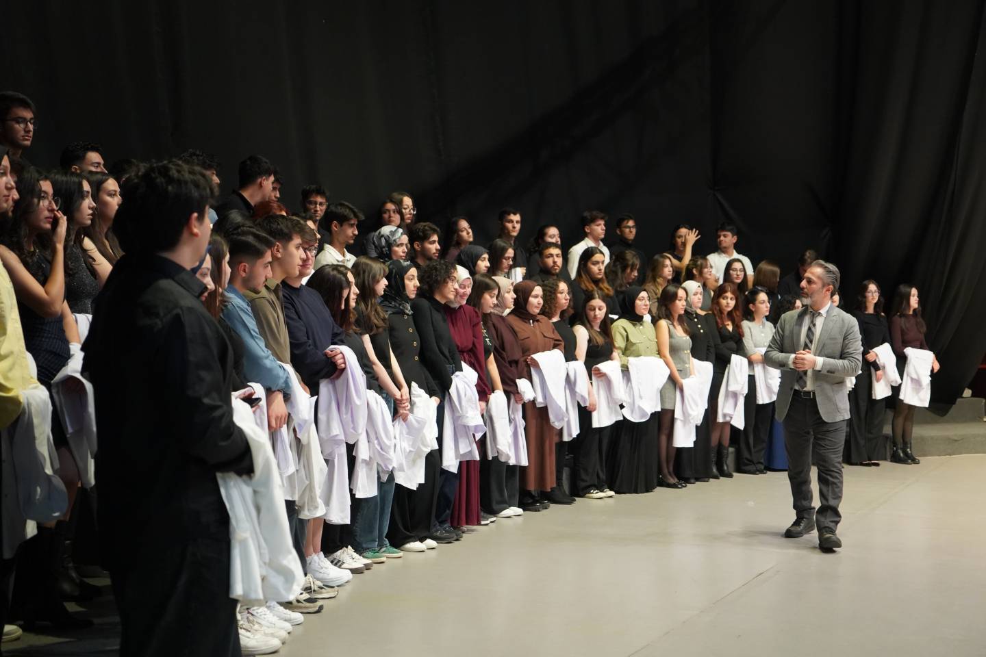 Program, Saygı Duruşu ve İstiklâl Marşı’nın okunmasıyla başladı. Ardından kürsüye gelen Dekanımız Prof. Dr. Tamer TAŞDEMİR, beyaz önlüğün bilgi, doğruluk ve insan sağlığına adanmışlığın simgesi olduğunu vurgulayarak öğrencilerin meslek etiği ve empatiyi her zaman ön planda tutmaları gerektiğini vurguladı.