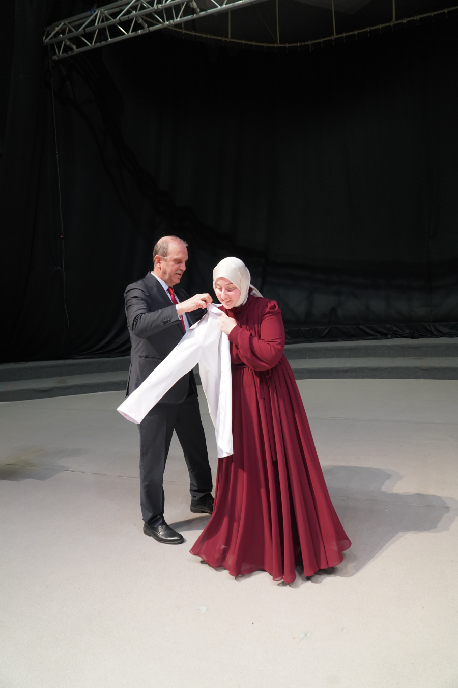Rektörümüz Prof. Dr. Hamdullah ÇUVALCI ise Üniversitemizin köklü geçmişinden ve fakültemizin akreditasyon başarısına değindi. Rektörümüz konuşmasında, “Beyaz önlük manevi bir sorumluluk taşır; etik duruş ve doğru iletişim, mesleğin temelidir,” ifadelerini kullandı.