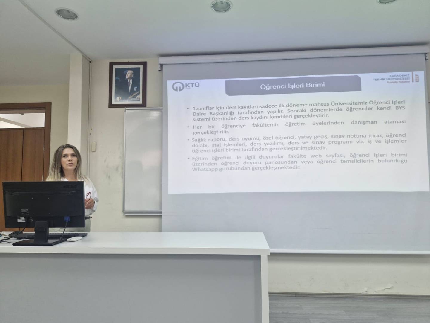 Yeni öğrencilerimizin üniversite hayatına ve fakültemiz eğitimine uyumunu kolaylaştırmak amacıyla düzenlenen etkinlikte; eğitim programı, üniversitemizin ve fakültemizin olanakları, çeşitli birimlerin işleyişi ve öğrenci toplulukları hakkında bilgilendirmeler yapıldı. Programın düzenlenmesine katkı sağlayan akademik ve idari personellerimize teşekkür eder, öğrencilerimize verimli ve keyifli bir üniversite eğitim hayatı dileriz.