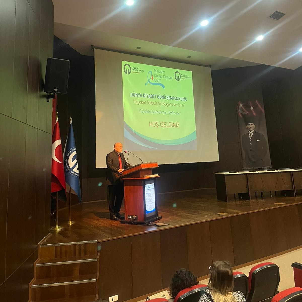 Uluslararası Diyabet Federasyonu tarafından 1991 yılından itibaren kutlanan “14 Kasım Dünya Diyabet Günü”, dünyanın en büyük diyabet farkındalık kampanyasıdır. Bu farkındalık kampanyasına bölgesel destek sağlamak amacıyla 14 Kasım 2025 tarihinde Prof. Dr. Osman TURAN Kültür ve Kongre Merkezi'nde, Üniversitemiz Eczacılık ve Tıp Fakülteleri tarafından "Dünya Diyabet Günü Sempozyumu" düzenlendi.