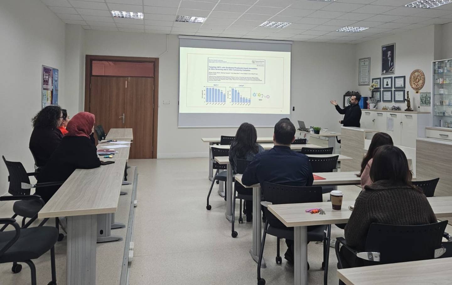 30 Aralık 2025 tarihinde Fakültemiz Farmasötik Kimya Ana Bilim Dalı'ndan Arş. Gör. Dr. Ahmet Buğra AKSEL'in sunumuyla makale saati etkinliği gerçekleştirildi. Sunumun ardından katılımcılarımız, makale hakkında bilimsel değerlendirmeler yaptılar.
