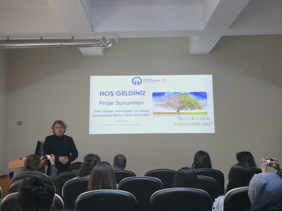 24 Aralık 2025 tarihinde Üniversitemiz Rektör Yardımcısı sayın Prof. Dr. Ali TEMİZ’in katılımıyla gerçekleştirilen toplantıda 5. sınıf öğrencilerimiz, ders kapsamında yürüttükleri özgün sosyal sorumluluk projelerini paylaştılar.