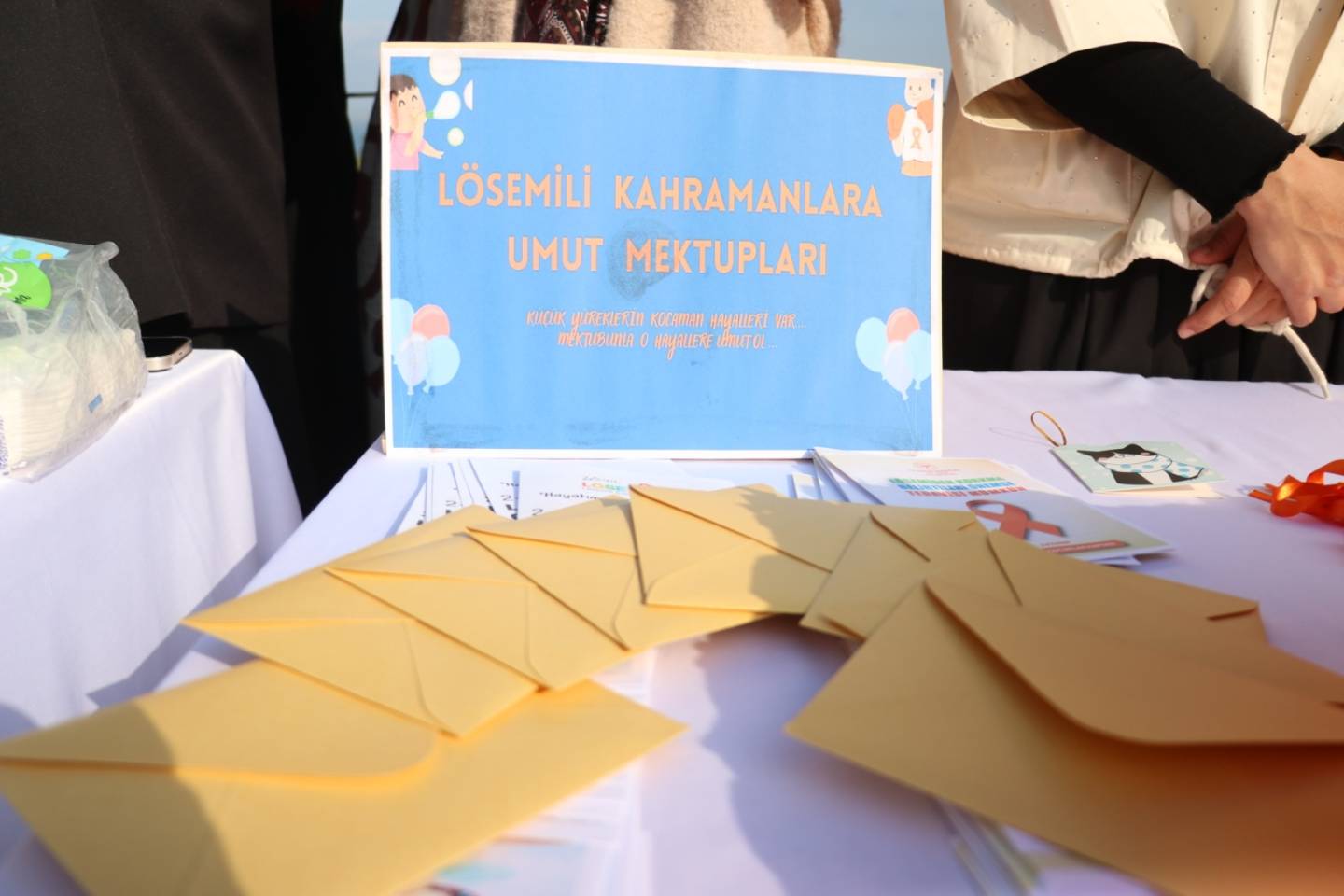 "Amacımız lösemi tedavisi gören çocuklara moral desteği sağlamak. Aynı zamanda üniversiteli gençlerde toplumsal duyarlılığı ve dayanışma bilincini pekiştirmek. Projemiz birkaç etkinlikten oluşmakta. İlk olarak bir bilgilendirme standı ve tatlı umutlar kermesi kurduk. Buradan elde ettiğimiz gelirle de tedavi gören çocuklara hediyeler aldık. Yine etkinliğimiz kapsamında umut mektupları yazıyoruz. Küçük kartlara samimi mesajlarla moral vermeye çalışıyoruz ve onların yanında olduğumuzu onlara hissettirmeye çalışıyoruz."