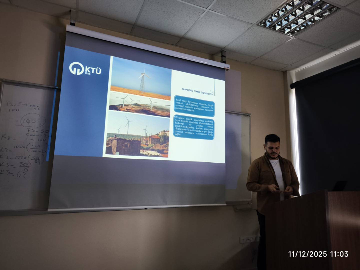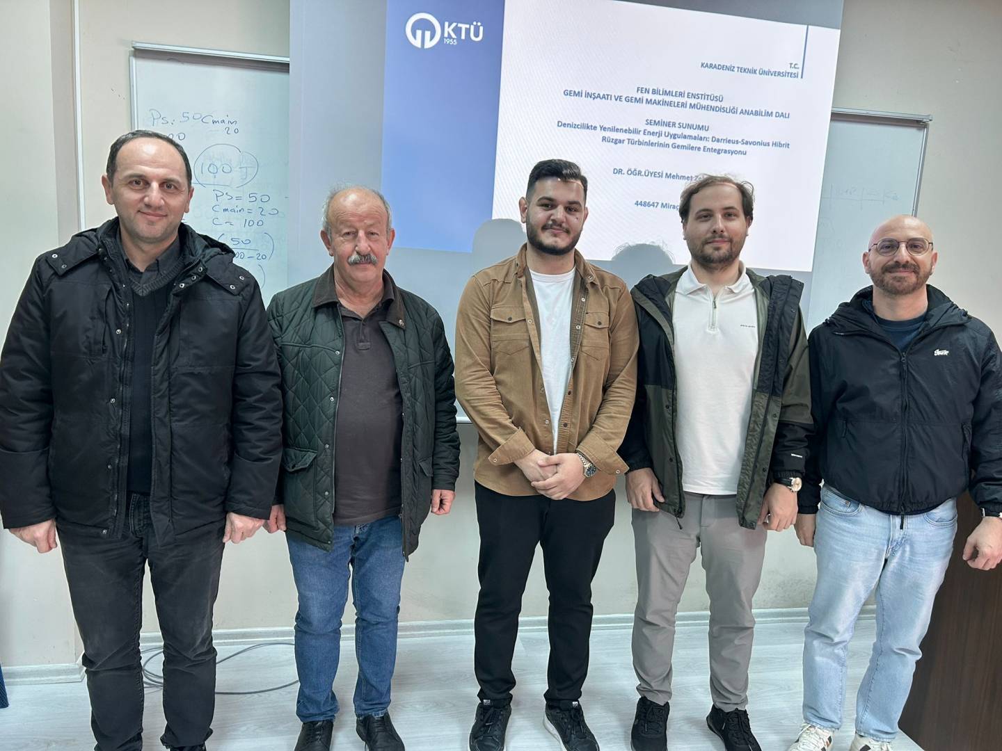 Bölüm Öğretim Elemanımız Arş. Gör. Miraç LEYLEK GIM5010 Seminer Dersi kapsamında "Denizcilikte Yenilenebilir Enerji Kaynakları Kapsamında Hibrit Rüzgâr Türbinlerinin Gemilere Entegrasyonu" başlıklı seminer sunumunu 11.12.2025 tarihinde gerçekleştirmiştir.