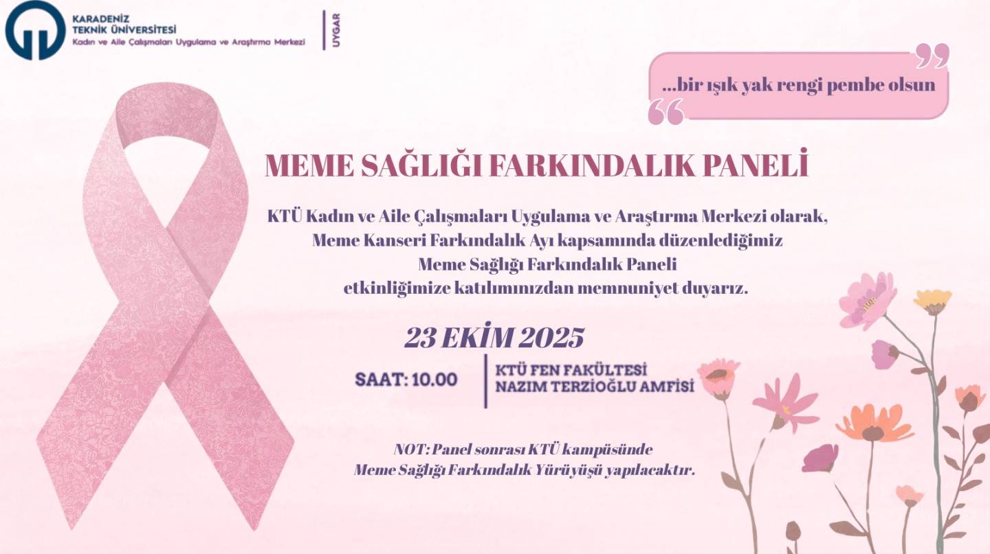 Üniversitemiz Kadın ve Aile Çalışmaları Araştırma ve Uygulama Merkezi tarafından düzenlenen Meme Kanseri Farkındalık Ayı kapsamında düzenlediğimiz “Meme Sağlığı Farkındalık Paneli” etkinliğimize tüm öğrencilerimizi, akademisyenlerimizi ve sağlık profesyonellerini davet ediyoruz.