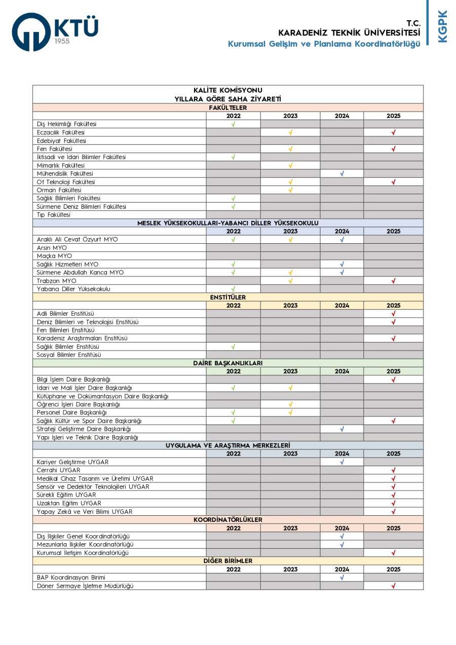 Üniversitemizin Kalite Komisyonu 2025 Yılı Saha Ziyaretlerini Tamamladı