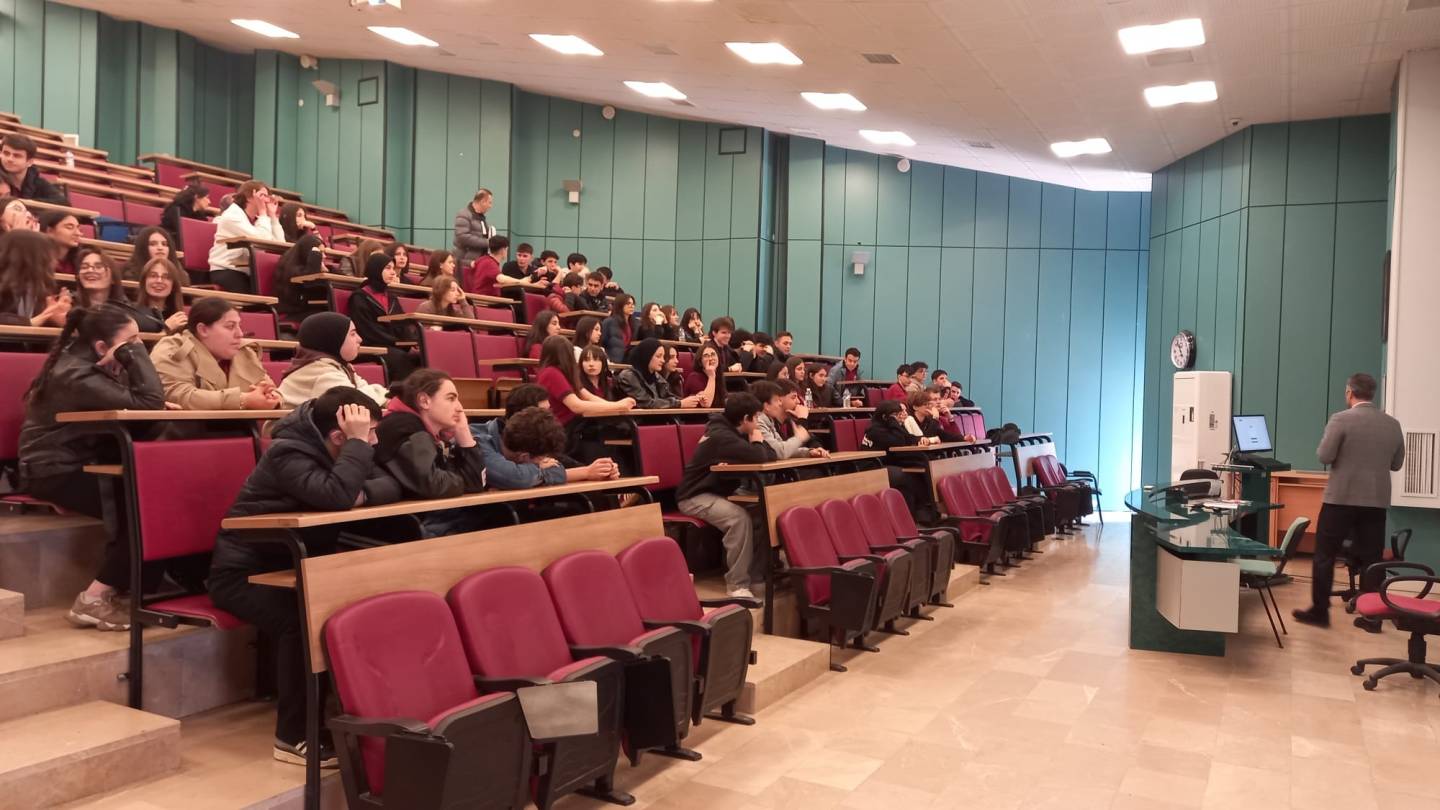 Ziyaret kapsamında, Dr. Öğr. Üyesi Ali Faruk ÖZYAŞAR tarafından Fakültemizin tanıtımı gerçekleştirildi. Öğrencilere eğitim-öğretim faaliyetlerimiz ve fakültemizin sunduğu olanaklar hakkında bilgi verildi. Ziyaret süresince öğrenciler, üniversite yaşamı ve akademik süreçler hakkında merak ettikleri soruları yöneltme fırsatı buldular. Etkinlik, samimi ve verimli bir atmosferde tamamlandı.