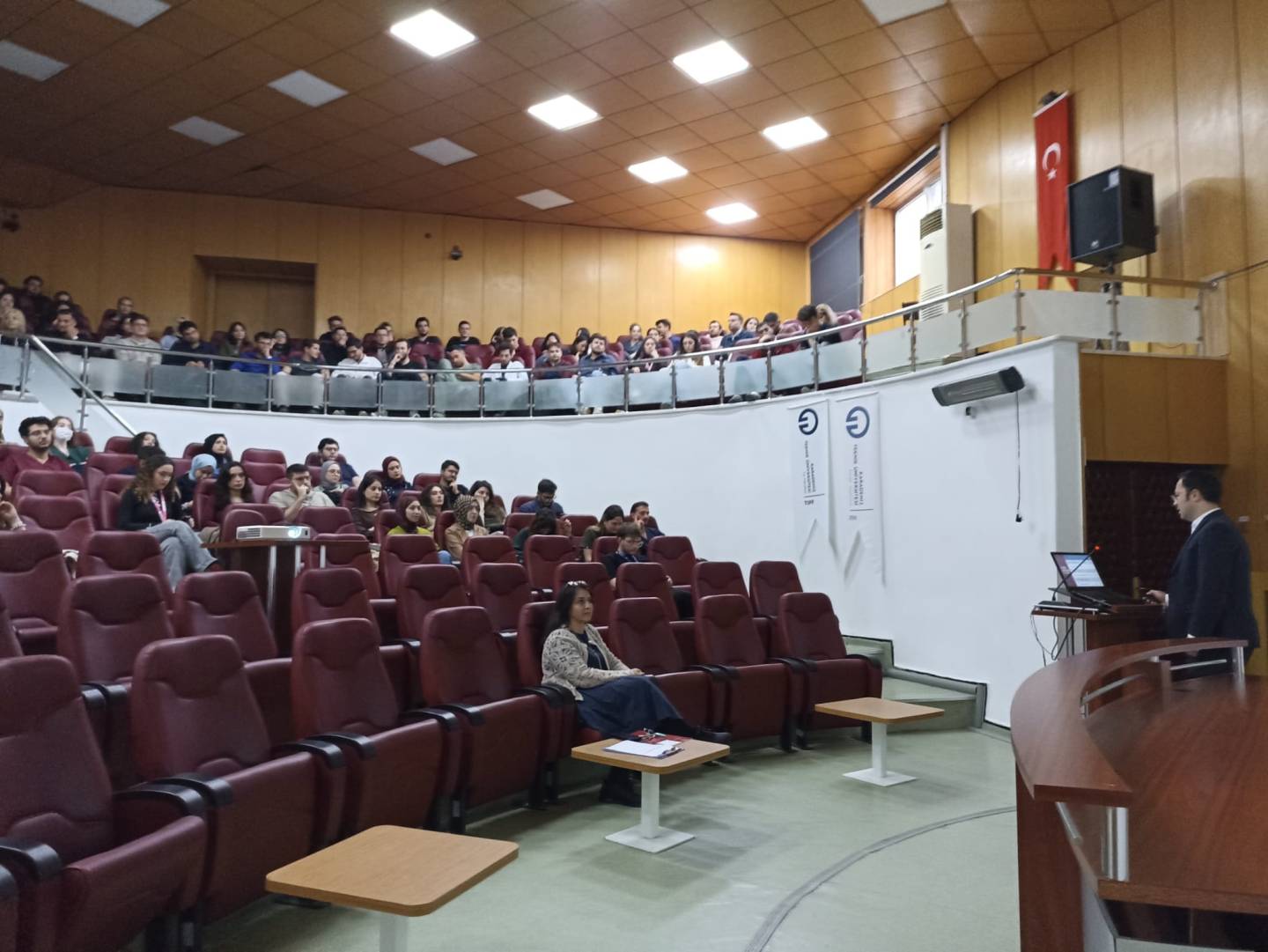 Fakültemiz dönem 6 öğrencileri ile İl Sağlık Müdürlüğü Sağlık Hizmetleri Başkanlığı Trabzon 112 Başhekimi Dr. Yusuf Eray USLU 15 Ekim 2025 Çarşamba günü saat 15.00'te Aydın İnal Amfisinde bir araya geldi.