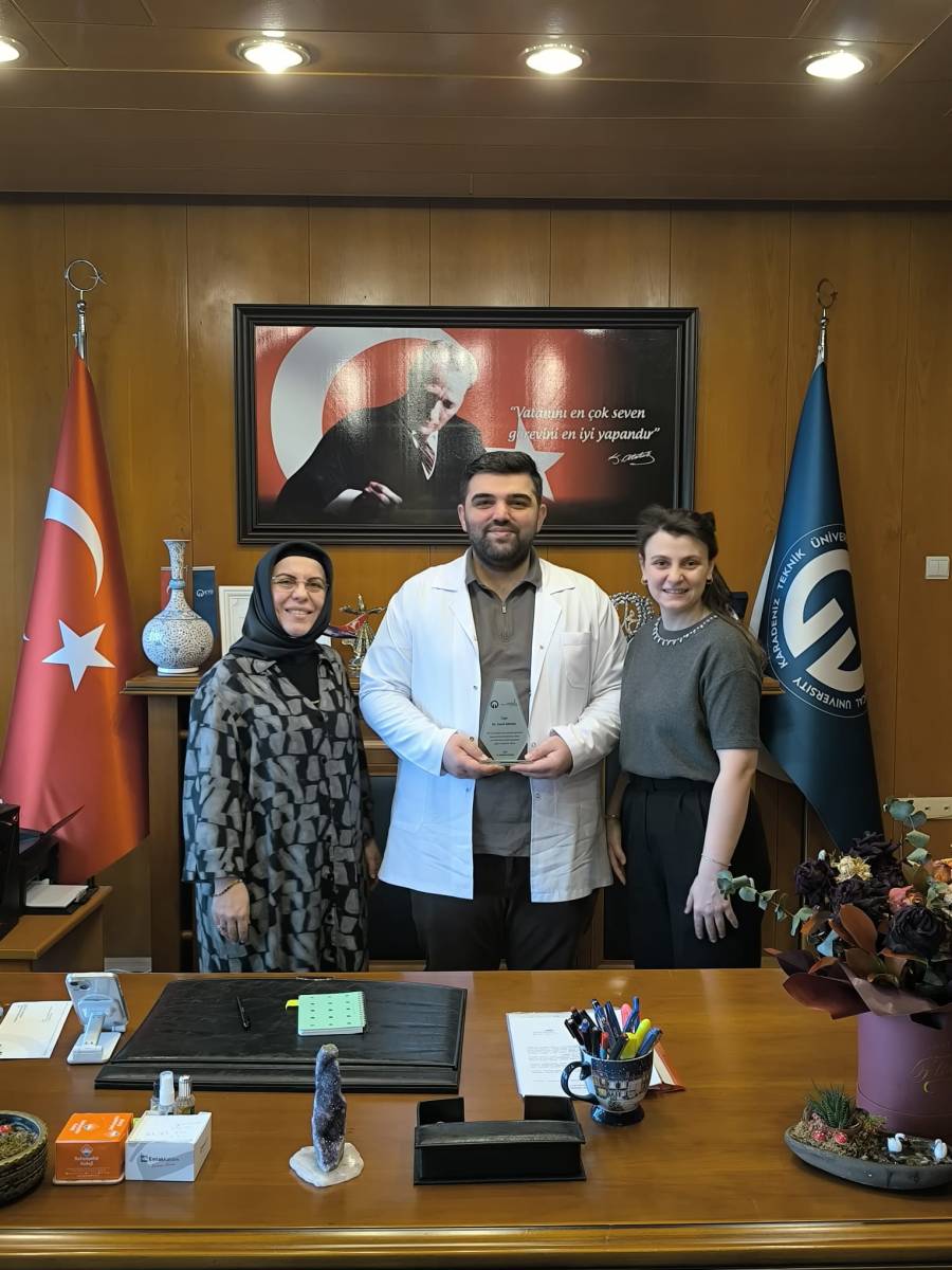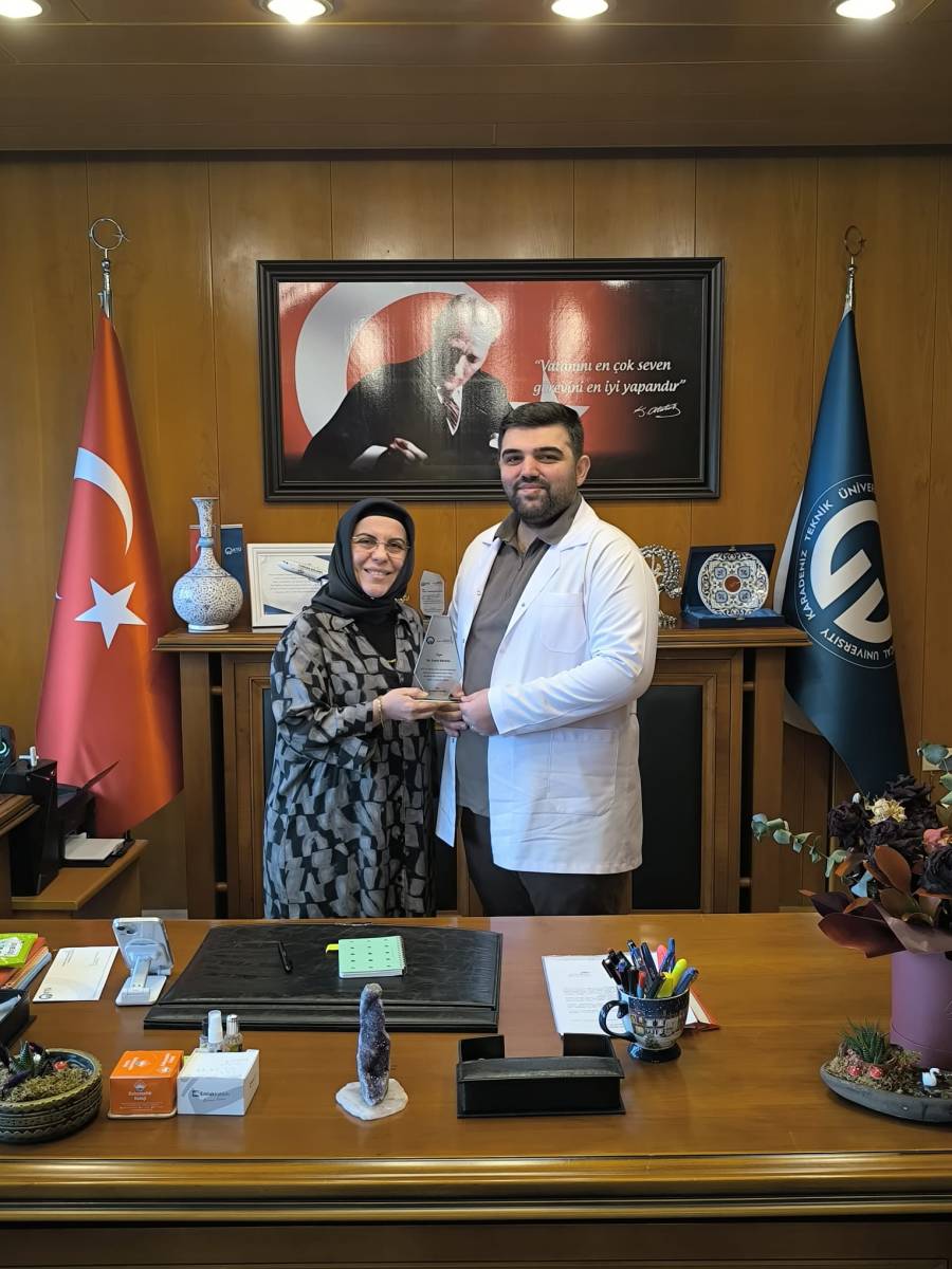 Fakültemizde uzmanlık eğitimlerini tamamlayan İç Hastalıkları Anabilim Dalından Uzm. Dr. Berk GENÇCELEP ve Uzm. Dr. Şükrü Furkan TURAN, Çocuk Sağlığı ve Hastalıkları Anabilim Dalından Uzm. Dr. Cemil BAYKAL, Anesteziyoloji ve Reanimasyon Anabilim Dalından Uzm. Dr. Sare Ceren ÇAMLICA, Deri ve Zührevi Hastalıkları Anabilim Dalından Uzm. Dr. Müberra Meral ÖZDEMİR, Tıbbi Mikrobiyoloji Anabilim Dalından Uzm. Dr. Enis TOPCU, Ruh Sağlığı ve Hastalıkları Anabilim Dalından Uzm. Dr. İzzet Çağrı METİN ve Adli Tıp Anabilim Dalından Uzm. Dr. Çağnur CANATAN TECİR' e Dekanımız Prof. Dr. Sevdegül AYDIN MUNGAN tarafından plaketleri takdim edildi.