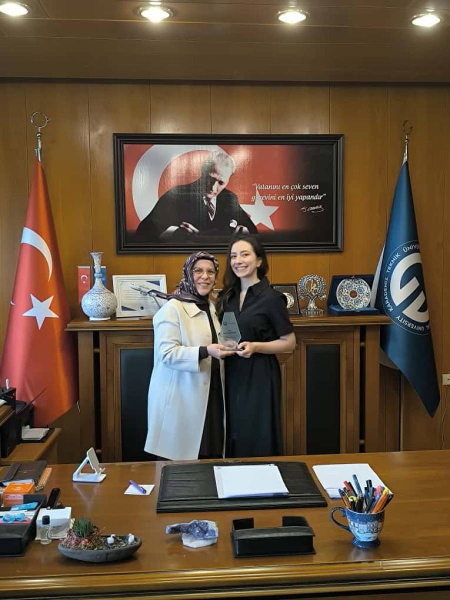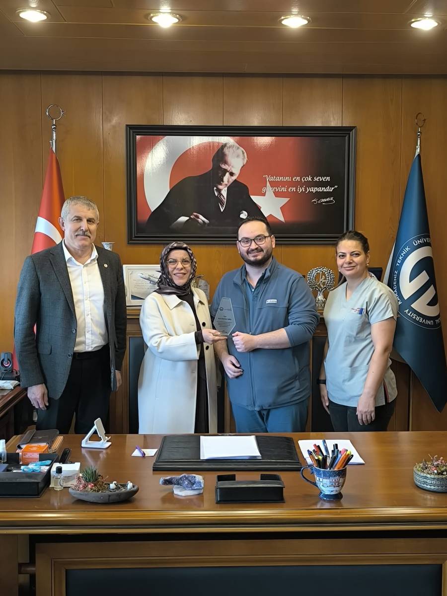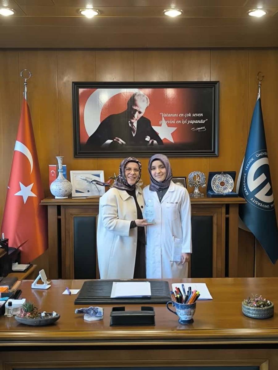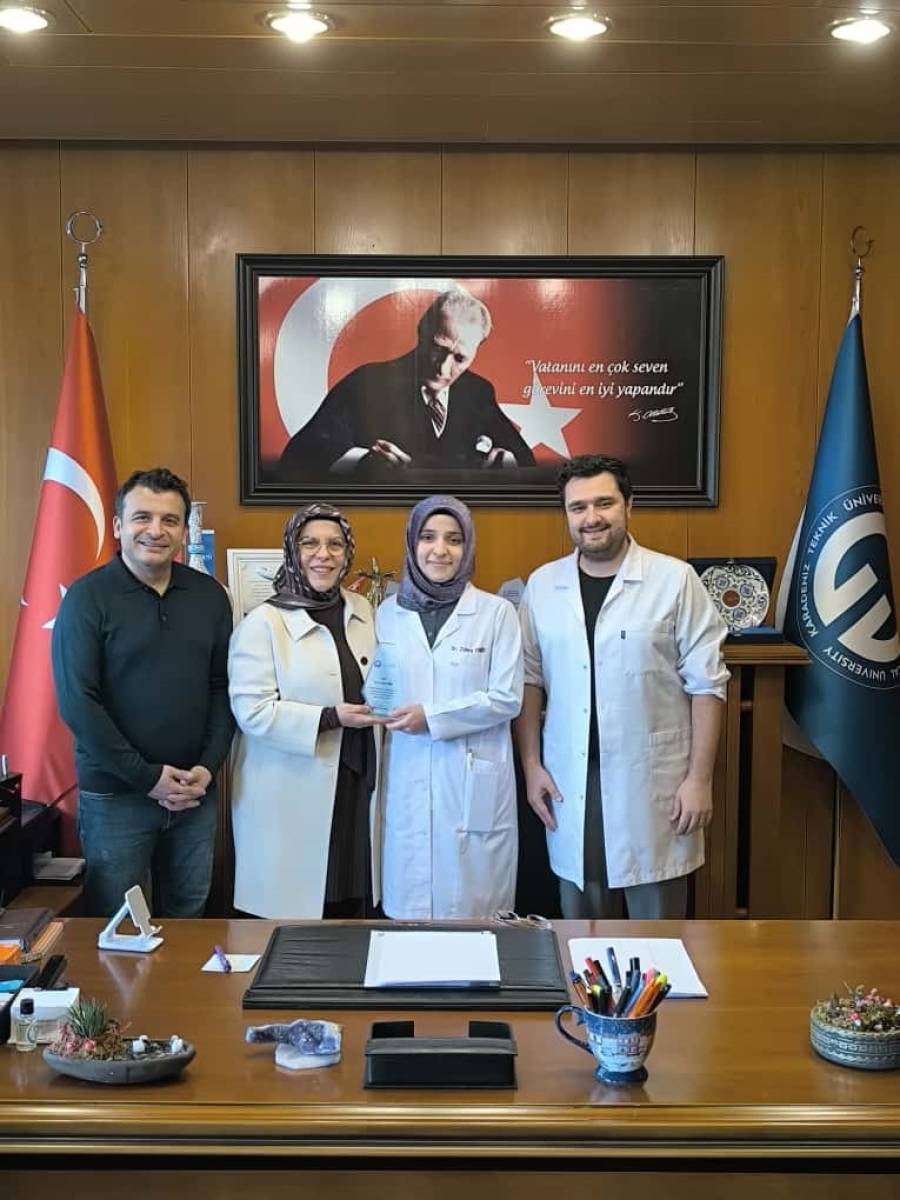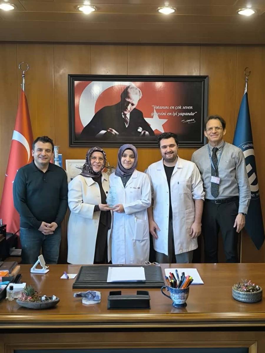 Fakültemizde uzmanlık eğitimlerini tamamlayan İç Hastalıkları Anabilim Dalından Tıbbi Onkoloji Yan Dal Uzm. Dr. Esra AŞIK, Acil Tıp Anabilim Dalından Uzm. Dr. Kaan Başar CANDAŞ, Kadın Hastalıkları ve Doğum Anabilim Dalından Uzm. Dr. Zehra EMİR ve Anesteziyoloji ve Reanimasyon Anabilim Dalından Eda KAZANÇ ÖZDEN'e Dekanımız Prof. Dr. Sevdegül AYDIN MUNGAN tarafından plaketleri takdim edildi.