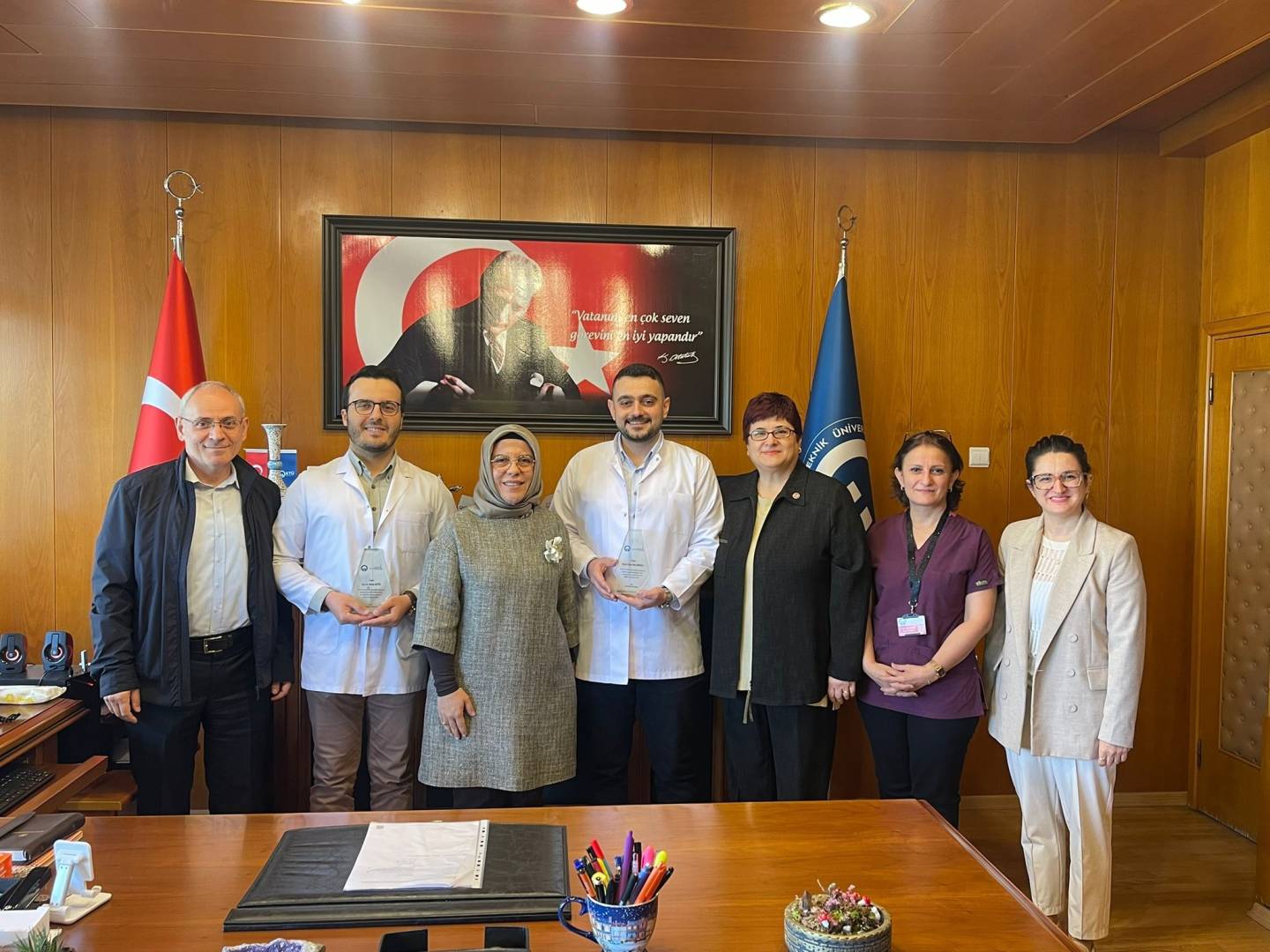 Fakültemizde uzmanlık eğitimlerini tamamlayan Göğüs Hastalıkları Anabilim Dalından Uzm. Dr. Ensar Cihat EMİROĞLU ve Uzm. Dr. Mesut AKYÜZ, Halk Sağlığı Anabilim Dalından Uzm. Dr. Behiye ŞAHBAZ, Aile Hekimliği Anabilim Dalından Uzm. Dr. Zeynep UZUN ve Uzm. Dr. Buket ERDEN, İç Hastalıkları Anabilim Dalından Tıbbi Onkoloji Yan Dal Uzm. Dr. Mehmet Akif TÜKENMEZ ve Endokrinoloji Yan Dal Uzm. Dr. Çiğdem BİRİNCİ'ye Dekanımız Prof. Dr. Sevdegül AYDIN MUNGAN tarafından plaketleri takdim edildi.