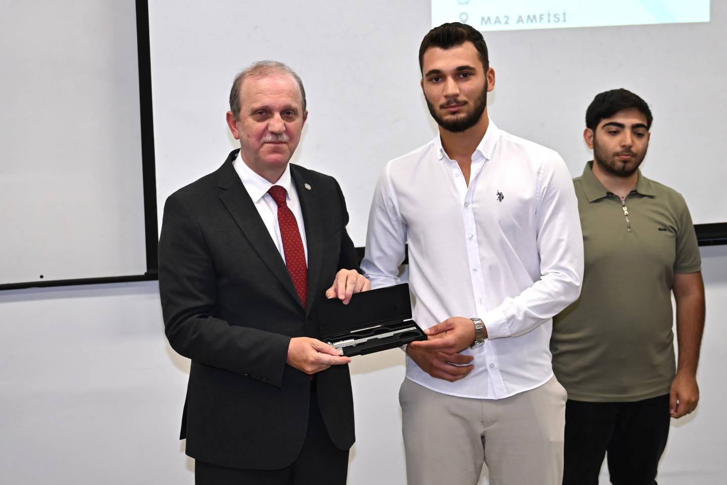 Dekanımız Prof. Dr. Temel VAROL, törende öğrencilere seslenerek “Fakültemizin en köklü ve saygın bölümlerinden biri olan Makine Mühendisliği’ni kazanan öğrencilerimizi yürekten tebrik ediyorum. Artık 500’e yakın akademik ve idari personeliyle güçlü bir ailenin parçasısınız. Hiçbirimiz bu sıralara mühendis olarak oturmadık; ancak sabır, azim ve rehberlikle hepimiz mühendis olarak mezun olduk. Sizler yalnızca bir meslek edinmeye değil, insan yaşamını kolaylaştıran ve teknolojiyi ileriye taşıyan bir vizyonun parçası olmaya adım atıyorsunuz. Unutmayın, burada atacağınız her adım yarının teknolojisine değerli bir katkı sağlayacaktır. Makine Mühendisliği öğrencilerimiz, TEKNOFEST’ten TÜBİTAK projelerine kadar birçok platformda başarıyla yer alıyor. Sizler de bu geleneği daha ileriye taşıyacaksınız.” mesajını verdi.