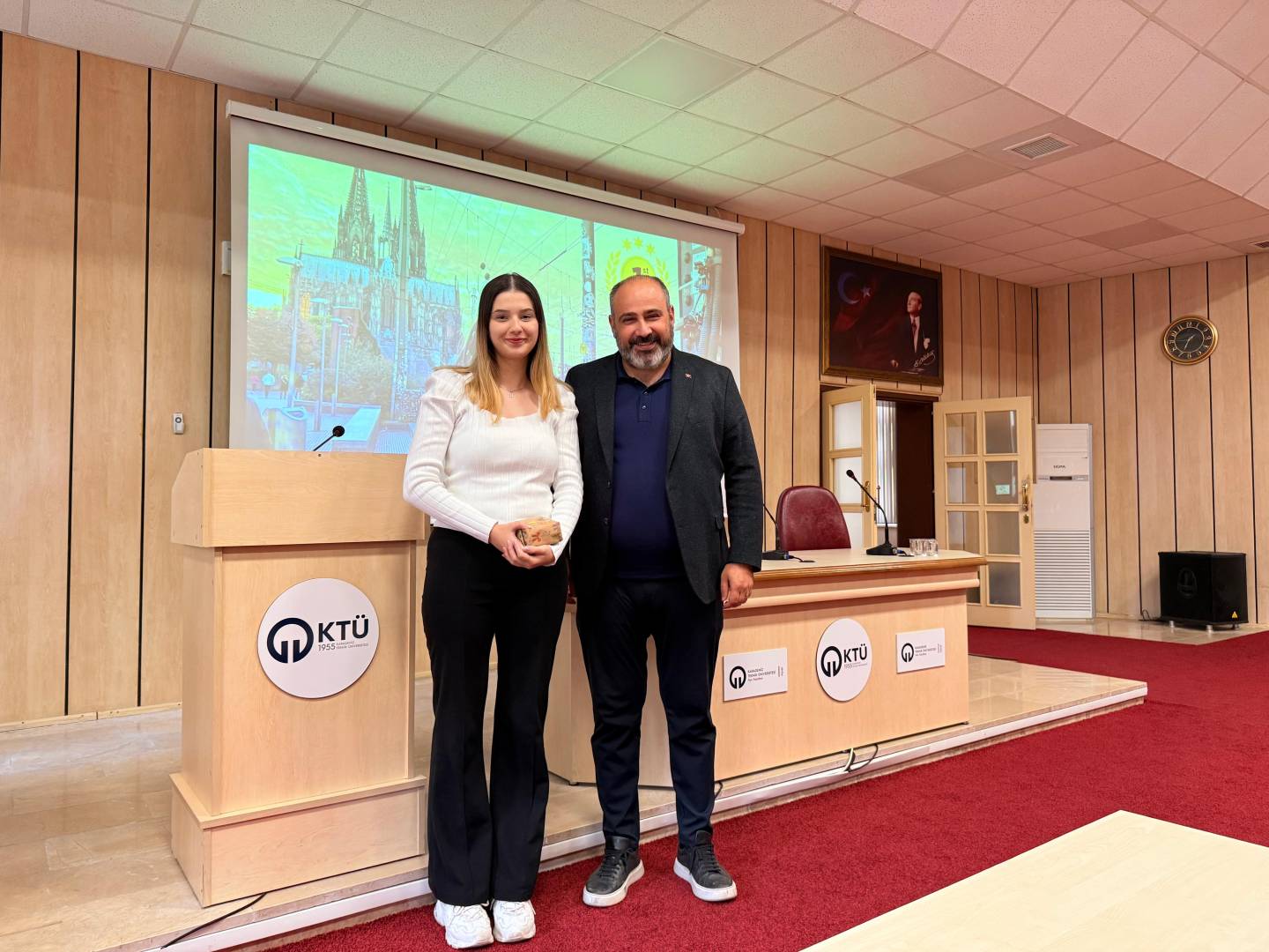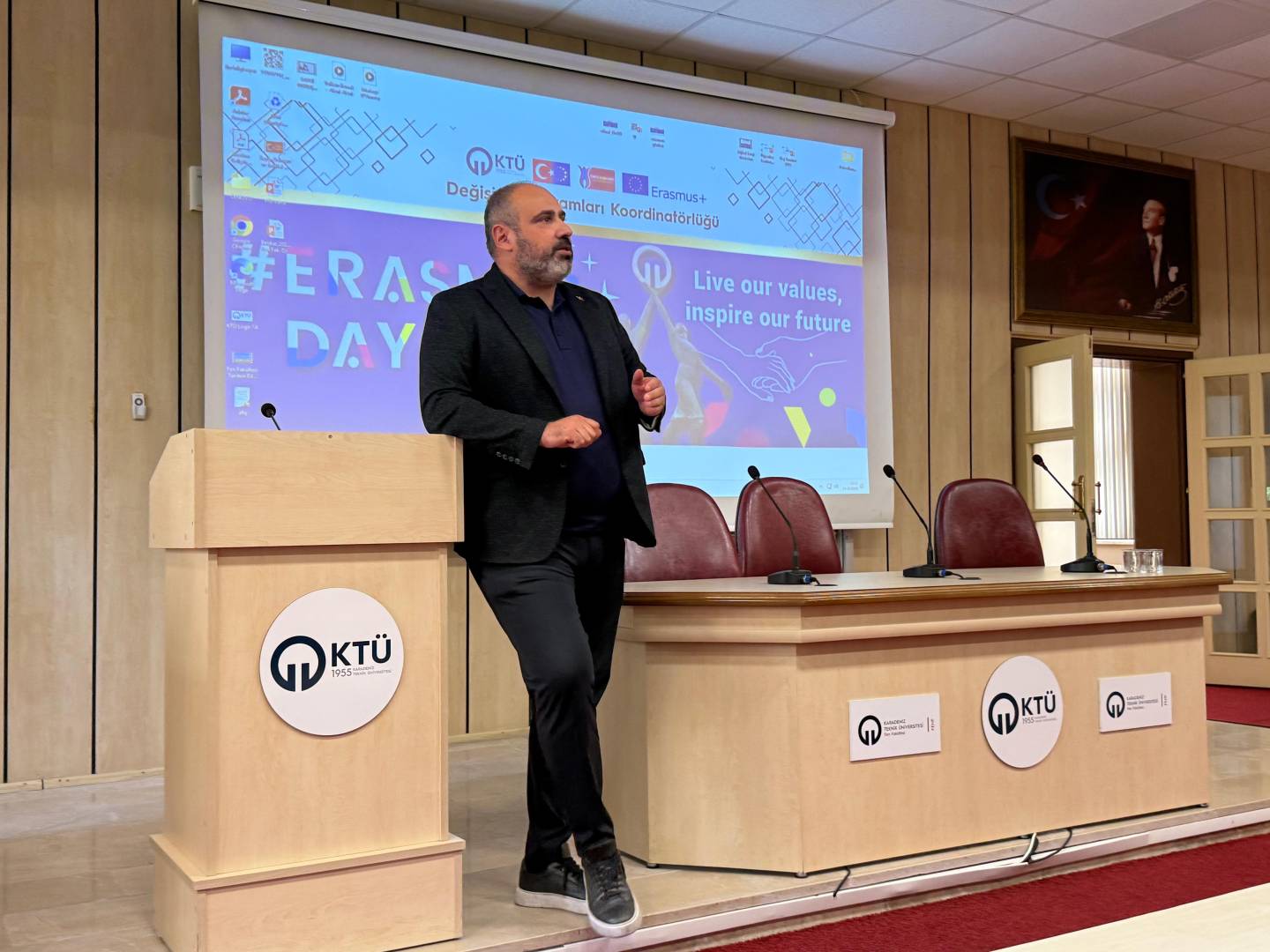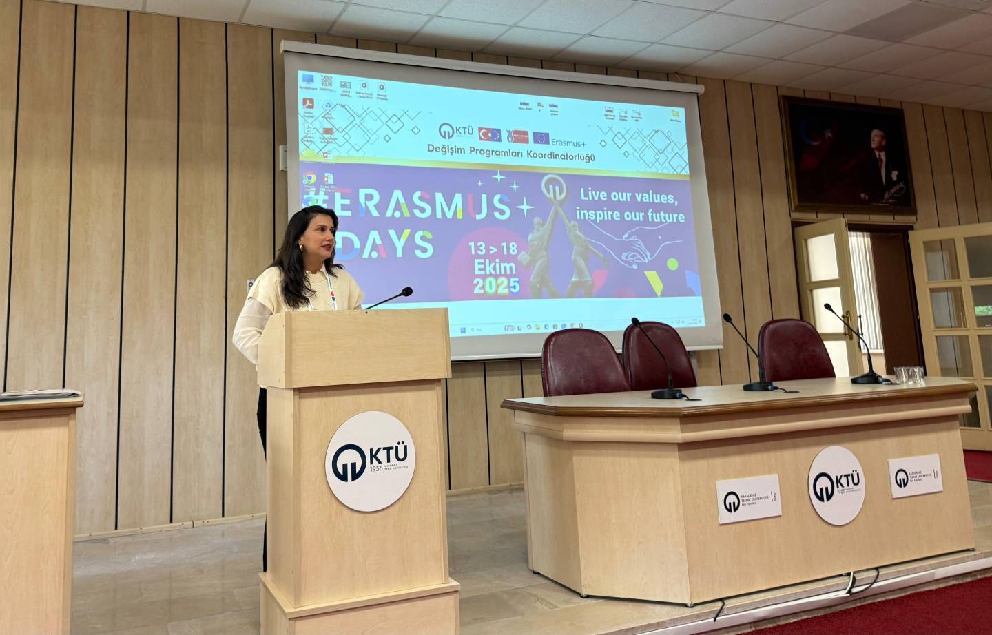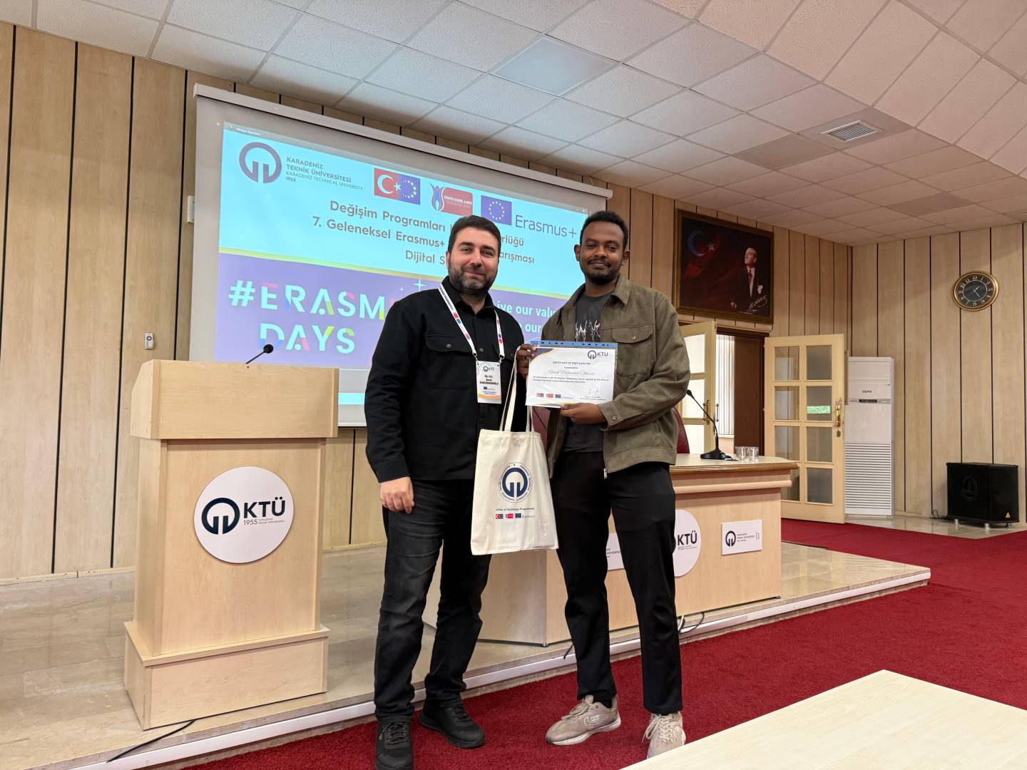 Bu yıl da hem dünyanın farklı ülkelerindeki hem de ülkemizdeki diğer üniversiteler ile eş zamanlı olarak, Üniversitemiz Değişim Programları Koordinatörlüğü’nün organizasyonuyla KTÜ Erasmus Günleri 2025 etkinlikleri 13-14-15 Ekim 2025 tarihlerinde düzenlendi. Etkinlikler kapsamında ayrıca 7. Geleneksel Erasmus+ Fotoğraf Yarışması düzenlendi. Yarışmada daha önce Erasmus+ programından faydalanmış öğrencilerin fotoğrafları yarıştı. Etkinliğin birinci gününde yarışmaya katılım sağlayan öğrencilerin fotoğrafları dijital sergi olarak Koordinatörlüğümüzün sosyal medya hesaplarında paylaşıldı. Etkinliğin ikinci gününde oylama sonucu ilk üçe giren fotoğrafların sahibi öğrencilerimiz için Fen Fakültesi Nazım Terzioğlu Amfisi'nde ödül töreni düzenlendi. Dereceye giren öğrencilerimize hediyeleri Dış İlişkiler Genel Koordinatörü Prof. Dr. Sercan EROL ve Değişim Programları Koordinatörlüğü ekibi tarafından takdim edildi. Ödül töreninin ardından Değişim Programları Koordinatörlüğü tarafından Erasmus+ Öğrenci Öğrenim ve Staj Hareketliliği programları hakkında bilgilendirme toplantısı düzenlendi. Etkinliğin son gününde daha önce Erasmus+ programından faydalanmış öğrencilerimiz deneyimlerini anlatan sunumlar gerçekleştirdiler ve Erasmus Student Network'ün KTÜ'deki temsilcisi olan ESN Trabzon tarafından ESN öğrenci topluluğunu tanıtan bir sunum gerçekleştirildi. Etkinliklere ve fotoğraf yarışmasına katılan tüm öğrencilerimize teşekkür ederiz.