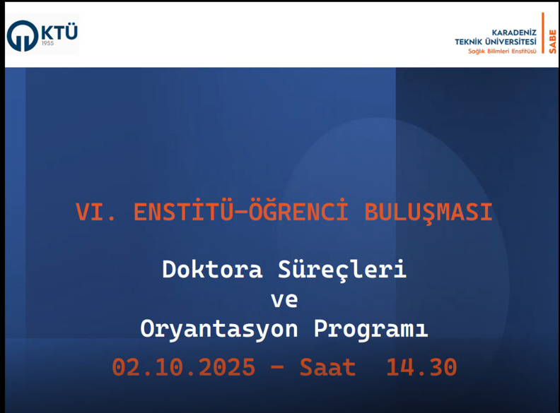 Doktora Öğrencilerimize Yönelik “VI. Doktora Öğrenci Bulusması” Çevrim içi olarak 02 Ekim 2025 tarihinde saat 14.30’da Enstitü Müdürümüz Prof. Dr. Sedat BOSTAN'ın açılış konuşmasıyla başladı ve Enstitü Müdür Yardımcımız Doç. Dr. Aysel ÖZSABAN'ın Enstitü yönetimi, personeli, iletişim araçları, web sayfası içeriği (akademik takvimin, formlar ve dilekçeleri, iş akışları, programların zorunlu dersleri, tez hazırlama ve yazım kılavuzu, sıkça sorulan sorular, bilgi paketi, mevzuat vb.) ve Doktora Süreçleri hakkındaki bilgi aktarımlarının ardından öğrencilerden gelen talep ve sorular cevaplandırıldı.