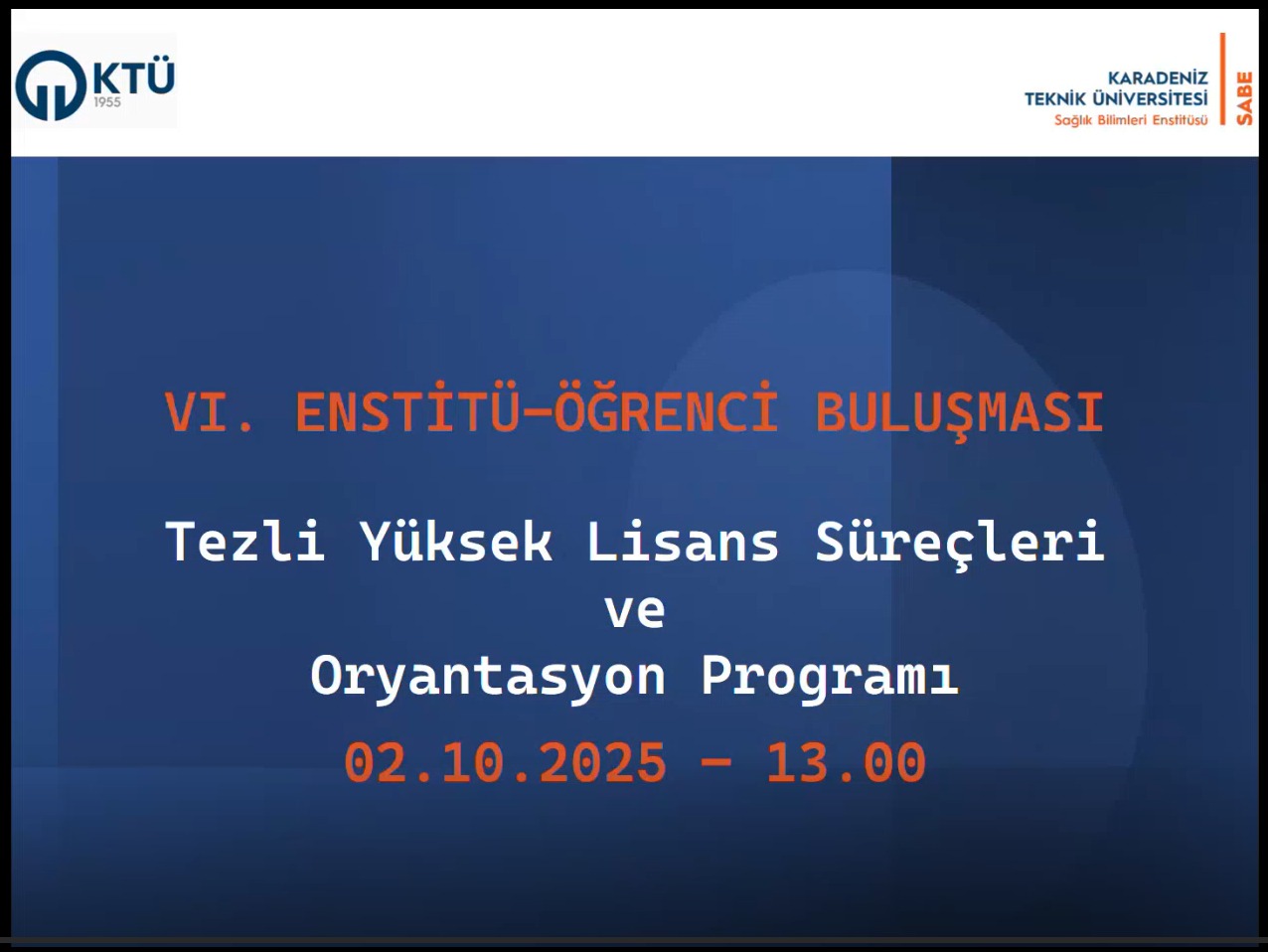 Yüksek Lisans Öğrencilerimize Yönelik “VI. Yüksek Lisans Öğrenci Bulusması” Çevrim içi olarak 02 Ekim 2025 tarihinde saat 13.00’da Enstitü Müdürümüz Prof. Dr. Sedat BOSTAN'ın açılış konuşmasıyla başladı ve Enstitü Müdür Yardımcımız Doç. Dr. Aysel ÖZSABAN'ın Enstitü yönetimi, personeli, iletişim araçları, web sayfası içeriği (akademik takvimin, formlar ve dilekçeleri, iş akışları, programların zorunlu dersleri, tez hazırlama ve yazım kılavuzu, sıkça sorulan sorular, bilgi paketi, mevzuat vb.) ve Tezli Yüksek Lisans Süreçleri hakkındaki bilgi aktarımlarının ardından öğrencilerden gelen talep ve sorular cevaplandırıldı.