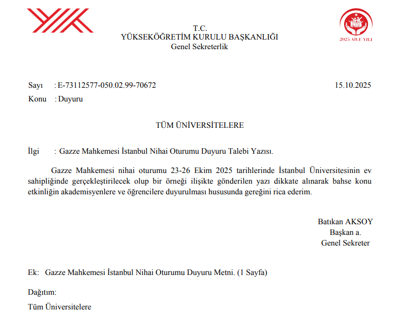 Gazze Mahkemesi İstanbul Nihai Oturumu Duyurusu