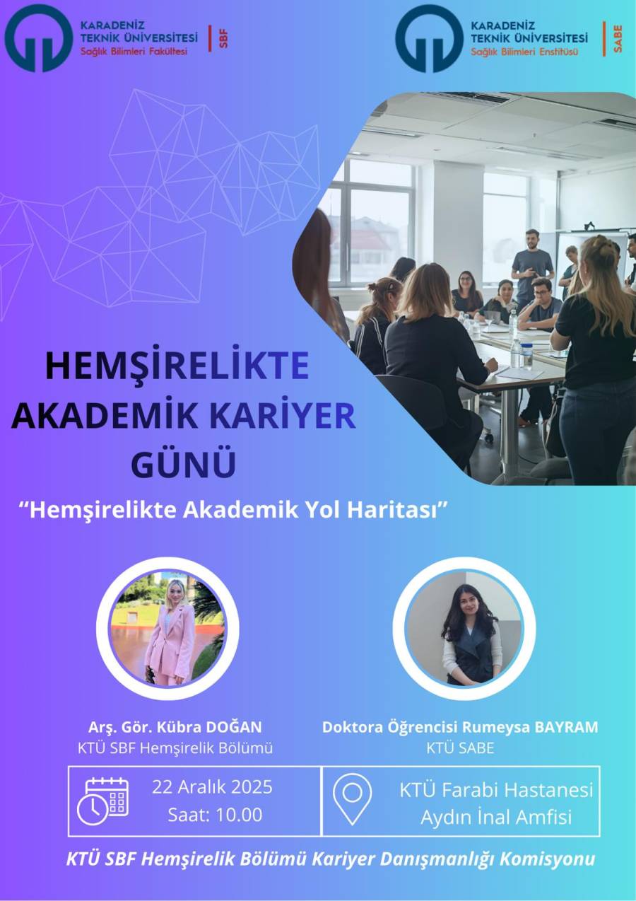 Sağlık Bilimleri Fakültesi Hemşirelik Bölümü Kariyer Danışmanlığı Komisyonu ve Sağlık Bilimleri Enstitüsü iş birliği ile "Hemşirelikte Akademik Kariyer Günü" konulu etkinlik gerçekleştirilmiştir.