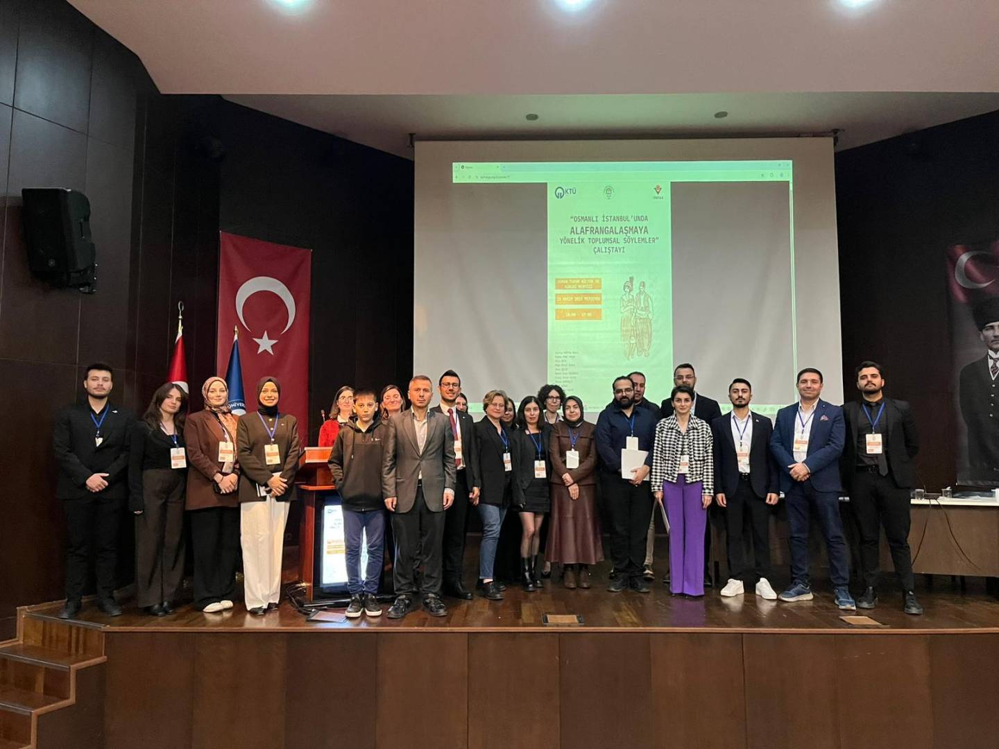 13.11.2025 tarihinde saat 10:00-17:00 saatleri arasında farklı bölümlerden de hocaların katılımı ile bölümümüz tarafından "Osmanlı İstanbul'unda Alafrangalaşmaya Yönelik Toplumsal Söylemler Çalıştayı" gerçekleştirilmiş, bölüm hocalarımızdan Dr. Öğr. Üyesi Emre Çelik ve Dr. Öğr. Üyesi İhsan Erdinçli de bildirilerini sunmuşlardır.
