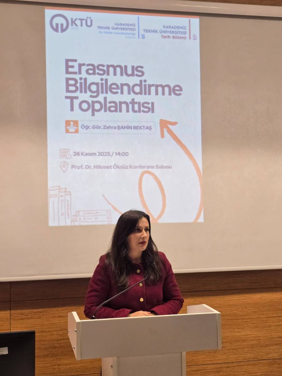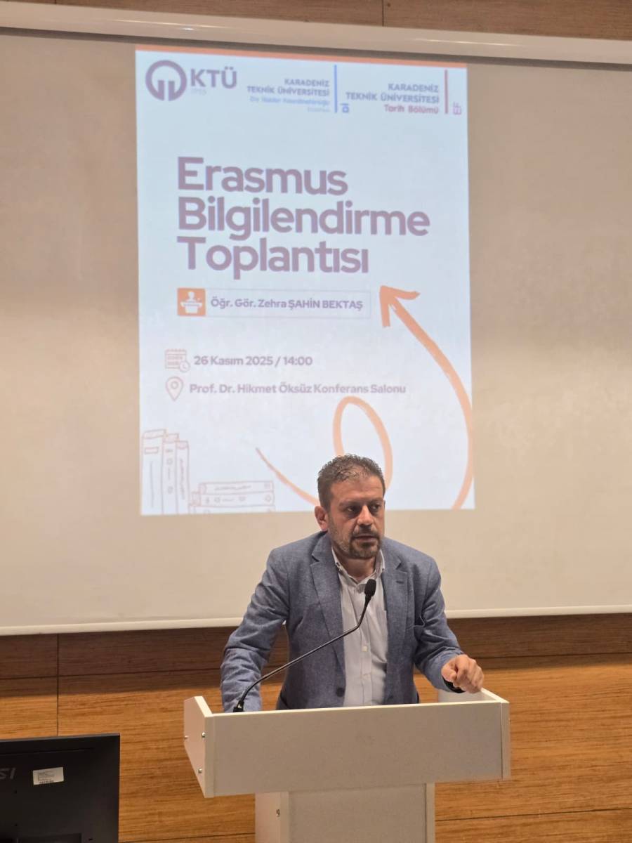 26.11.2025 tarihinde saat 14:00'da bölümümüz ve KTÜ Dış İlişkiler Koordinatörlüğü ile birlikte Erasmus Bilgilendirme Toplantısı yapılmıştır.