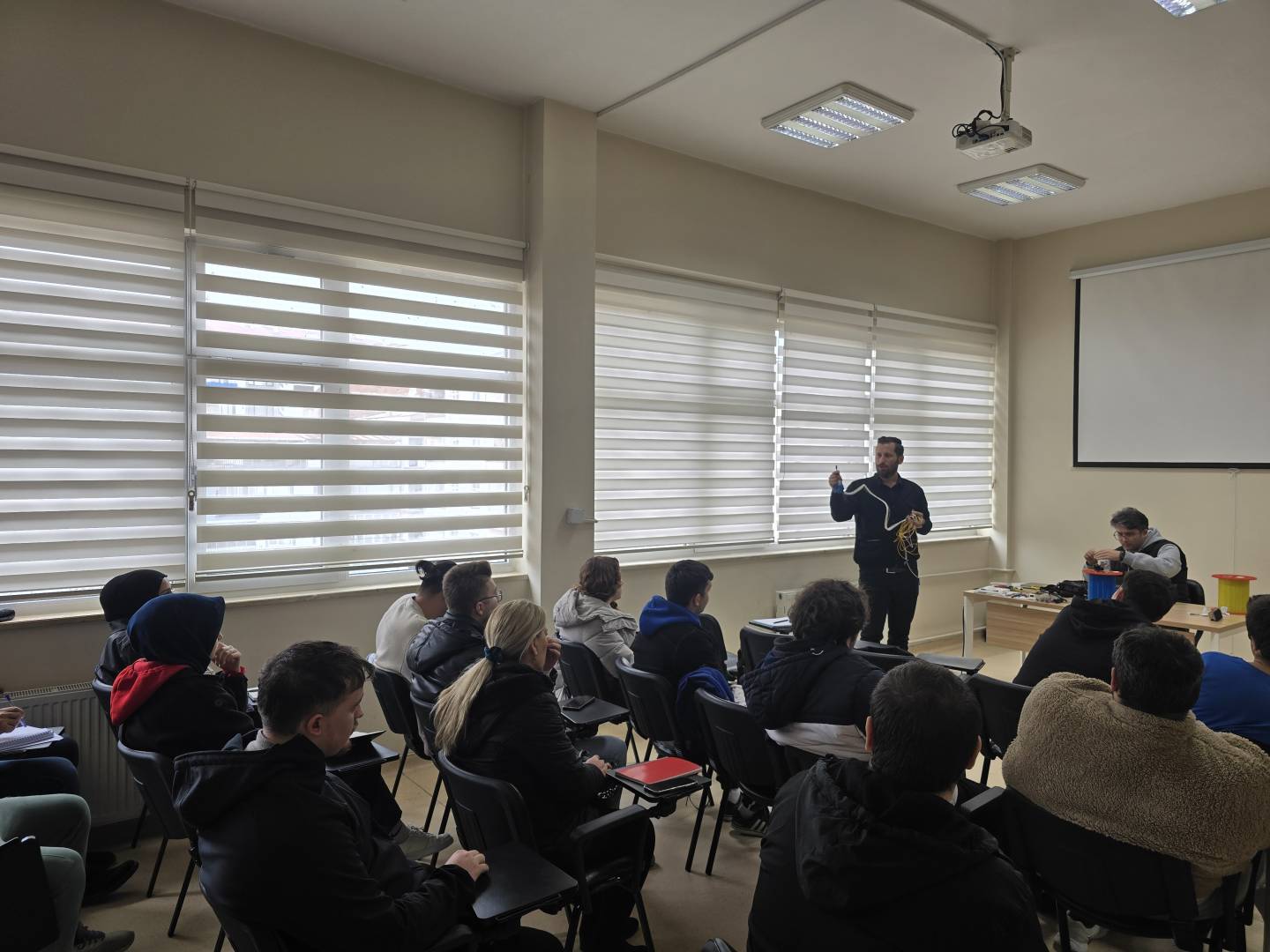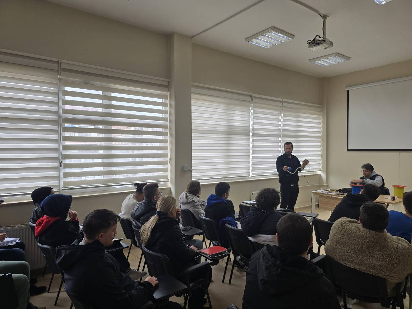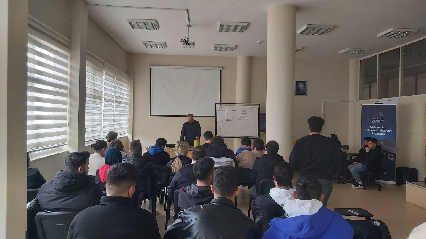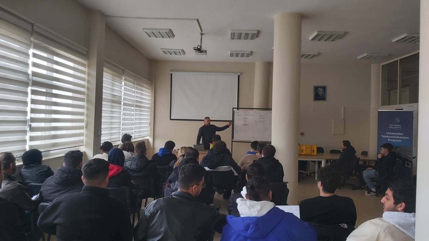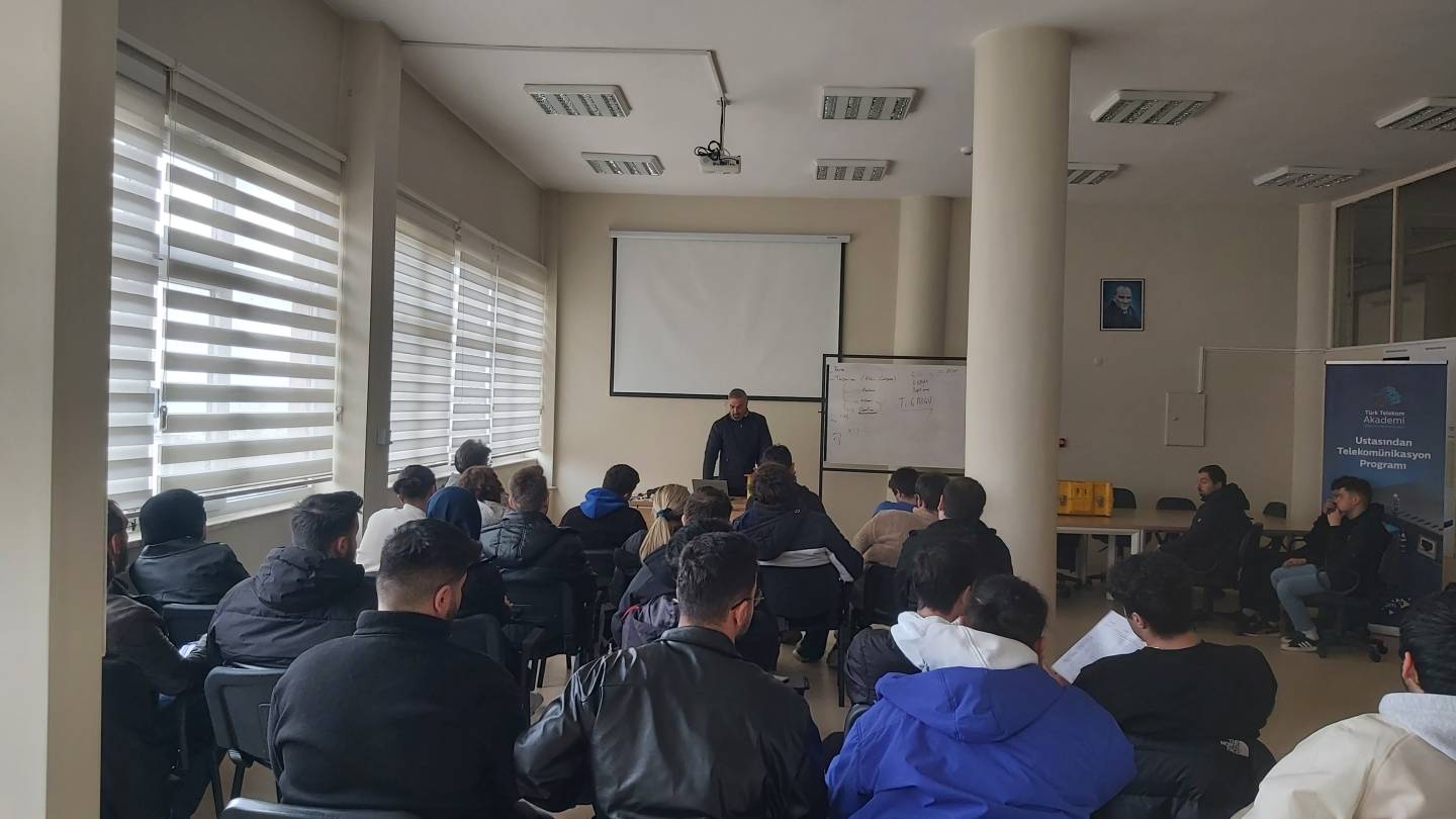 Elektronik ve Otomasyon Bölümü, Elektronik Teknolojisi Programı 2. sınıf TELT 2024 Telekomünikasyon Teknolojileri dersi kapsamında, Türk Telekomünikasyon A.Ş. adına sektör temsilcileri derslere katılım sağlamıştır. Bu kapsamda Serdar Sungur 24.02.2025 tarihinde saat 13:00’te, Tuncay Parlayan 03.03.2025 tarihinde saat 13:00’te, Oğuzhan Kutrup ve Hüseyin İnan 10.03.2025 tarihinde saat 13:00’te, Turgut Abdioğlu 17.03.2025 ve 24.03.2025 tarihlerinde saat 13:00’te, Fatih Örem 07.04.2025 tarihinde saat 13:00’te, Sena Akdoğan 21.04.2025 ve 28.04.2025 tarihlerinde saat 13:00’te, Taner Eskiçırak 05.05.2025 tarihinde saat 13:00’te, Murat Peker 12.05.2025 tarihinde saat 13:00’te ve Kemal Öztürk 02.06.2025 tarihinde saat 13:00’te derslere katılarak öğrencilerimize gelişen haberleşme teknolojileri, telekomünikasyon altyapıları ve sektör uygulamaları hakkında güncel bilgi ve deneyimlerini aktarmışlardır.