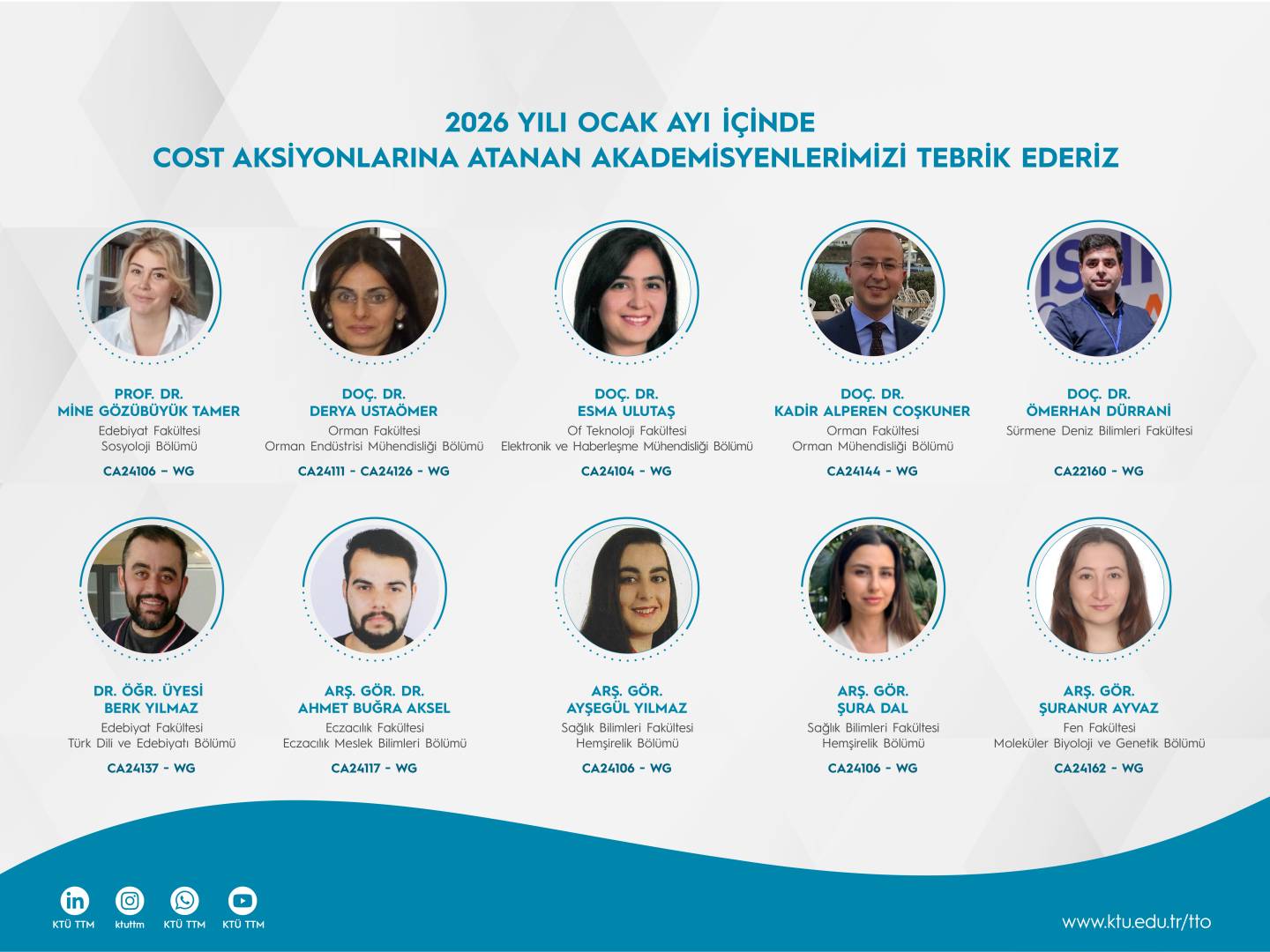 2026 yılı Ocak ayı içinde COST Aksiyonuna atanan araştırmacılarımızı tebrik eder, aksiyondaki çalışmalarında başarılar dileriz.