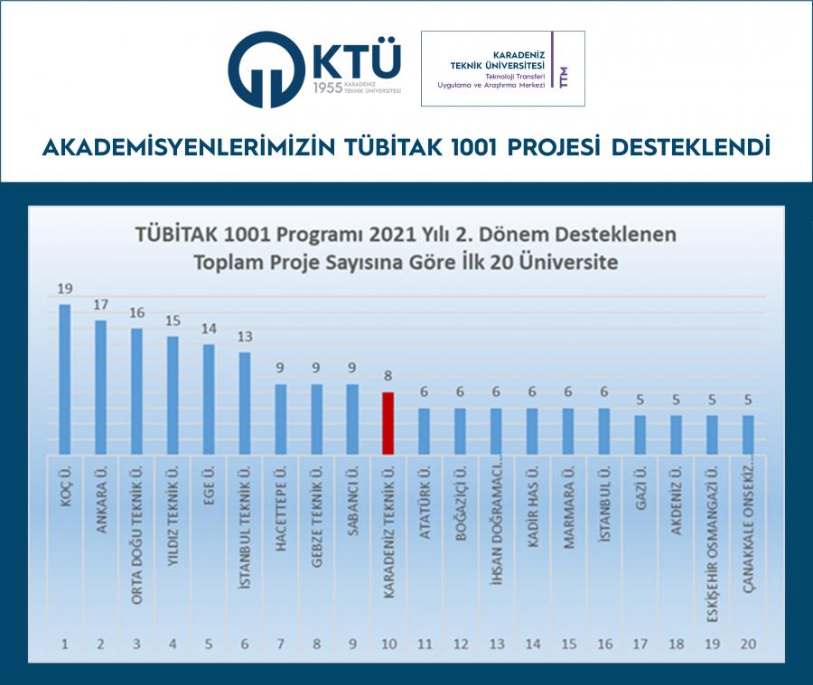 2021 yılı 2. Döneminde TÜBİTAK "1001-Bilimsel ve Teknolojik Araştırma Projelerini Destekleme Programı" kapsamında sunulan ve bir sonraki dönemi beklemeden tekrar başvuru yapılmasına imkân sağlanan projeler değerlendirilmiş, KTÜ’den sunulan 3 proje desteklenmeye hak kazanmıştır.