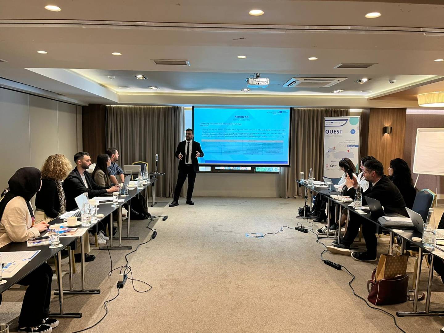 Interreg NEXT Black Sea Basin Programme kapsamında yürütülen ve Karadeniz Teknik Üniversitesi Teknoloji Transferi Uygulama ve Araştırma Merkezi’nin proje ortağı olarak yer aldığı “Quadruple Helix-Based Enhancement of Stakeholders at Black Sea Territory (QUEST) Projesi”, Trabzon Ticaret ve Sanayi Odası’nın (TTSO) koordinatörlüğünde; Union of Bulgarian Black Sea Local Authorities (UBBSLA) ve Organization for Local Development (ANATOLIKI S.A.) ortaklığında uygulanmakta olup, Karadeniz Havzası’nda yer alan kamu, üniversite, özel sektör ve sivil toplum kuruluşlarının fonlara erişim kapasitelerinin artırılmasını, proje geliştirme ve uygulama yetkinliklerinin güçlendirilmesini ve kurumlar arası iş birliklerinin geliştirilmesini amaçlamaktadır.