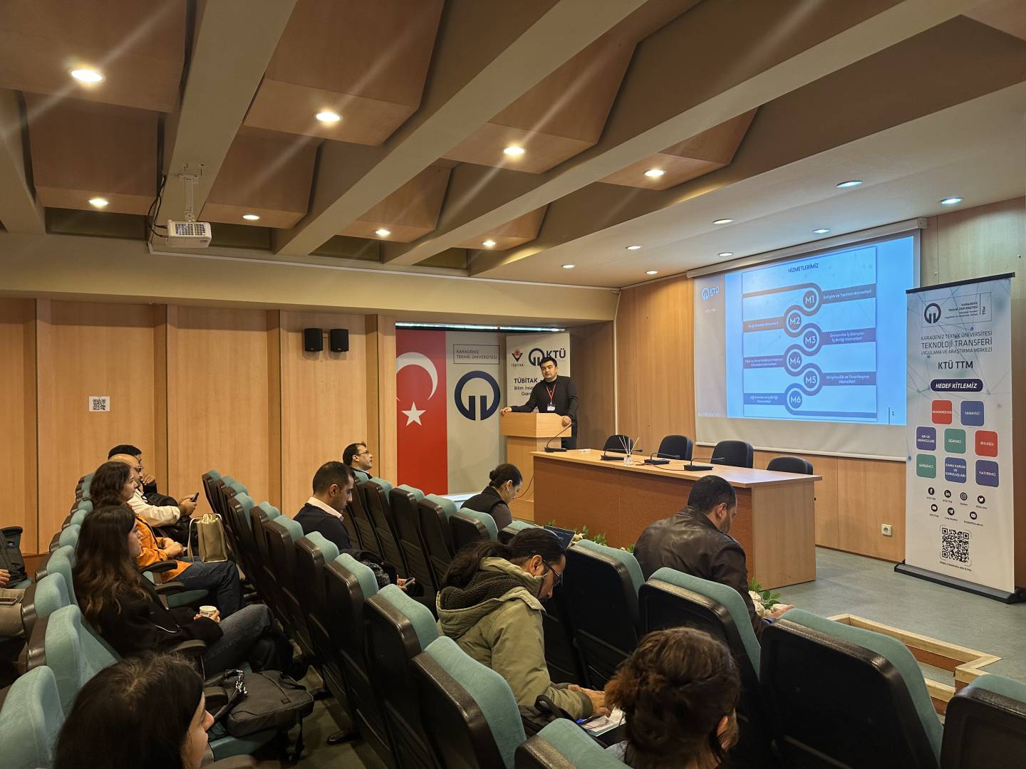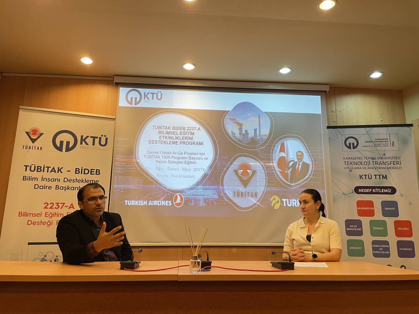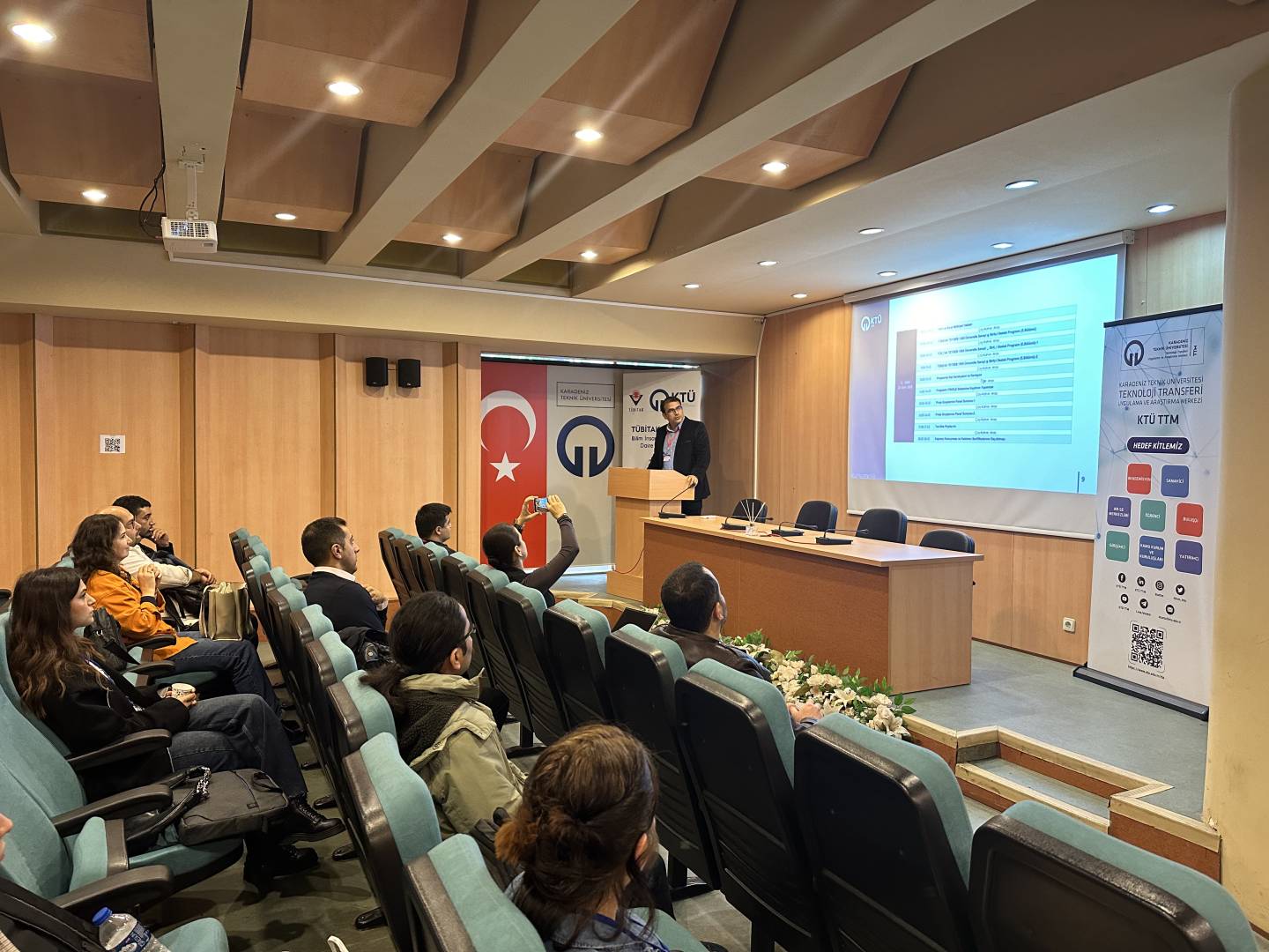 TÜBİTAK 2237-A Programı kapsamında, Dr. Öğr. Üyesi Uğur ŞEVİK yürütücülüğünde ve KTÜ Teknoloji Transferi Uygulama ve Araştırma Merkezi ev sahipliğinde düzenlenen “Sanayi Odaklı Ar-Ge Projeleri için TÜBİTAK 1505 Üniversite-Sanayi İş Birliği Destek Programı Başvuru ve Yazım Süreçleri” etkinliği, 3 farklı üniversite ve 6 farklı firmadan toplamda 22 kişinin katılımıyla gerçekleştirildi.
