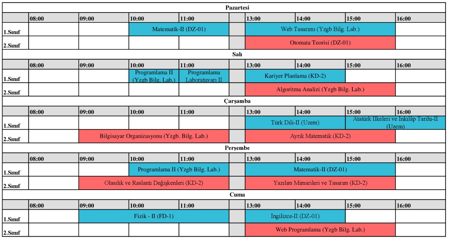 2025-2026 Bahar Dönemi ders programı hazırlanmıştır. Ders programına ulaşmak için tıklayınız.