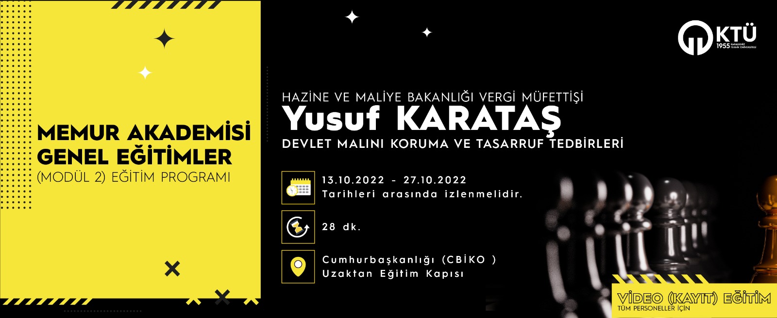 KTÜ Memur Akademisi Genel Eğitimler kapsamında tüm personellerimize yönelik Devlet Malını Koruma ve Tasarruf Tedbirleri Eğitimi verilecektir.