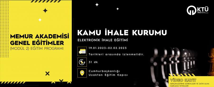 KTÜ Memur Akademisi Genel Eğitimler kapsamında Gerçekleştirme Görevlileri, Satın Alma ve Harcama Yetkilileri'ne  yönelik "Elektronik İhale Eğitimi" eğitimi verilecektir.