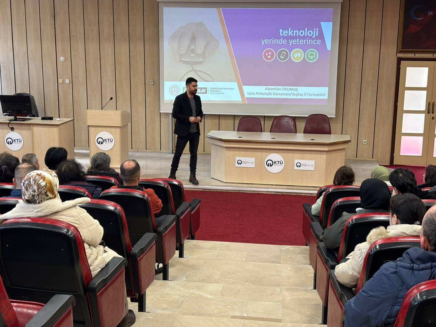Karadeniz Teknik Üniversitesi (KTÜ) personeline yönelik, sağlıklı yaşam ve teknoloji kullanımı farkındalığını artırmaya yönelik önemli bir eğitim başarıyla tamamlandı. Millî Eğitim Bakanlığı Yeşilay İl Formatörü Uzm. Psikolojik Danışman Alparslan Okumuş tarafından “Sağlıklı Yaşam ve Teknoloji Bağımlılığı” konulu eğitim, Fen Fakültesi Nazım Terzioğlu Amfisinde yoğun katılımla gerçekleştirildi.