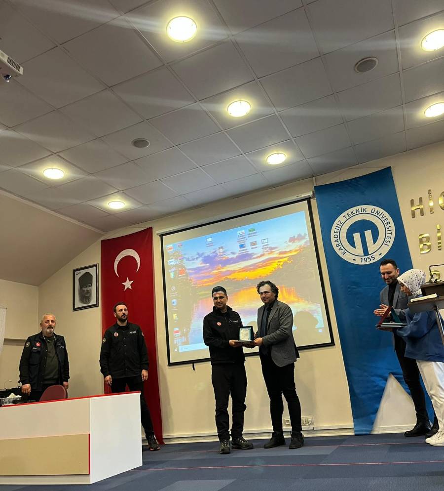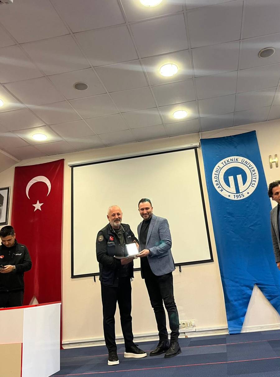 11 Aralık 2025 tarihinde Meslek Yüksekokulumuz konferans salonunda AFAD Trabzon İl Müdürlüğü tarfından "Afet Farkındalık Eğitimi" gerçekleştirildi. Eğitim Şube Müdürü Tolga MUSLU, Eğitim Uzmanı M.Önder BAYTAR ve Arama ve Kurtarma Şefi Erkan AKPINAR tarafından "Afet Farkındalık Eğitimi", "Afad Gönüllülük Sistemi" ve "Arama Kurtarma Faaliyetleri" konu başlıkları hakkında bilgilerin verildiği etkkinliğe öğrencilerimiz yoğun katılım sağladı. Öğrencilerin sık sık soru ve yorumları ile katkıda bulunduğu etkinliğin sonunda Yükseokulumuz Müdürü Prof. Dr. Özcan ÖZYURT ve Mülkiyet Koruma ve Güvenlik Bölüm Başkanı Öğr. Gör. Dr. Ahmet Cem ESENLİKCi tarafından katılımcılara plaket ve teşekkür belgesi takdim edildi.