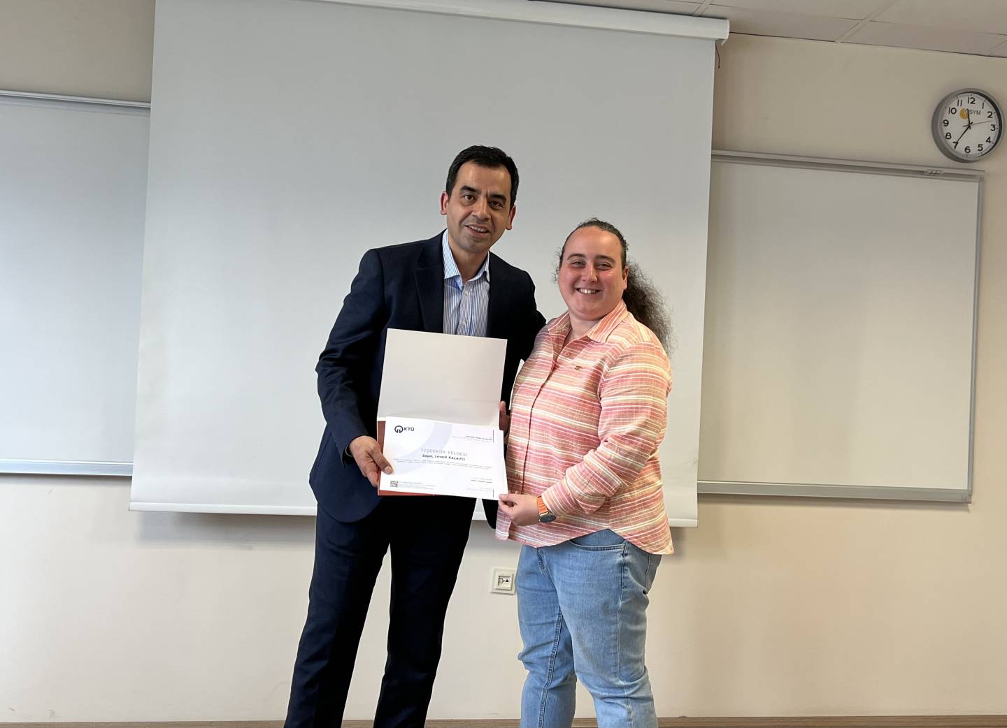 KALAYCI, "Pazarlama ve Tüketici Kararları" konulu sunumunda, davranışsal iktisat, tüketici davranışları ve karar verme ile zihinsel onay hususlarında sahadan örnek olay ve uygulamaları paylaştı. Her alanda olduğu gibi lojistik ve pazarlama sektöründe de birçok veriye ulaşılabildiği, bu büyük ve çok miktarda verinin şirketler tarafından bilgisayar teknolojileri, dijital süreçler ve yapay zeka ile entegre edildiğinde söz konusu şirketlerin kazanç maksimizasyonu hedeflerine hizmet etmedeki önemini vurgulayan KALAYCI, öğrencilere sertifikalı kurs ve eğitim alabilecekleri platformlar konusunda önerilerde bulunarak sunumunu sonlandırdı. Öğr. Gör. Dr. Damla EKER'in Levent KALAYCI'ya teşekkür belgesini takdim etmesinin ardından ders sona erdi.