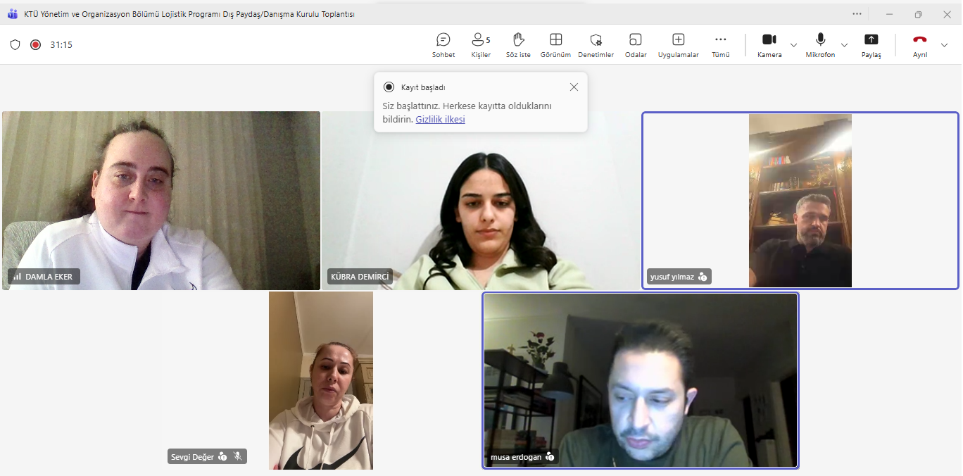 Sayın paydaşlarımız Yusuf YILMAZ, Musa ERDOĞAN, Muhammet Enes YILMAZ ve Kübra DEMİRCİ'ye bölümümüzdeki eğitim-öğretim faaliyet ve süreçlerini sektörle iş birliği içinde geliştirme kapsamındaki değerli fikir ve tavsiyeleri için teşekkür ediyoruz.