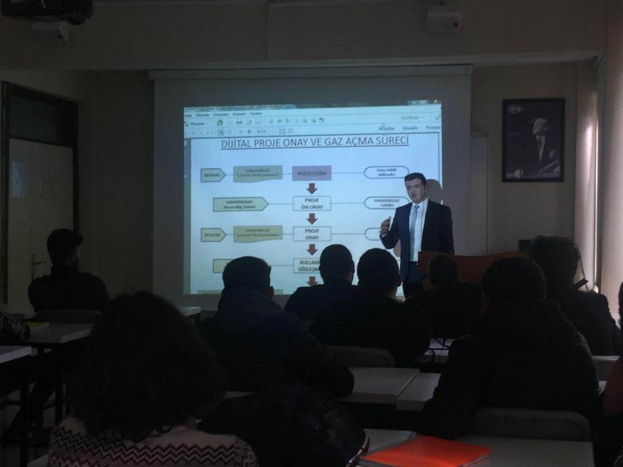 13 Aralık Çarşamba günü düzenlenen etkinlikte Aksa Karadeniz Doğalgaz Trabzon temsilcisi Sayın Ömer REVİ tarafından ''Tesisat Kontrol ve Kabul Esasları'' semineri düzenlendi.Bölgemizde karşılaşılan sorunlar ve yeni doğalgaz yatırım planları hakkında degerlendirmelerin ardından öğrencilerin konu ile ilgili sorularının cevaplanmasıyla etkinlik sona erdi.Sunumun ardından Arsin MYO Müdür Yardımcısı Öğr.Gör.Yakup HEYAL TARAFINDAN Ömer REVİ'ye teşekkür belgesi takdim edildi.