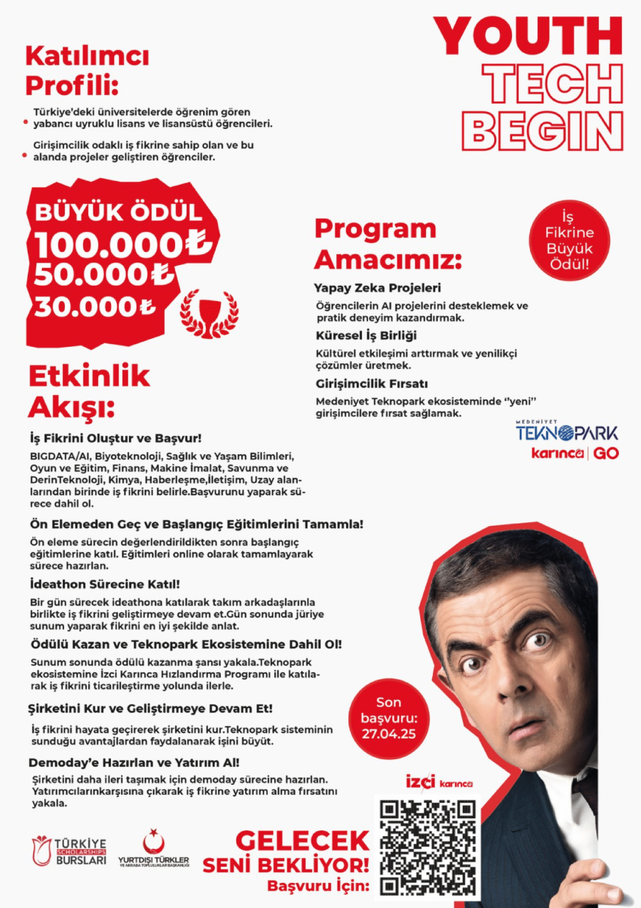 "YOUTH TECH BEGIN" Girişimcilik Programı kapsamında, Türkiye’de öğrenim gören uluslararası lisans ve lisansüstü öğrencilere yönelik bir girişimcilik destek programı başlatılmıştır.