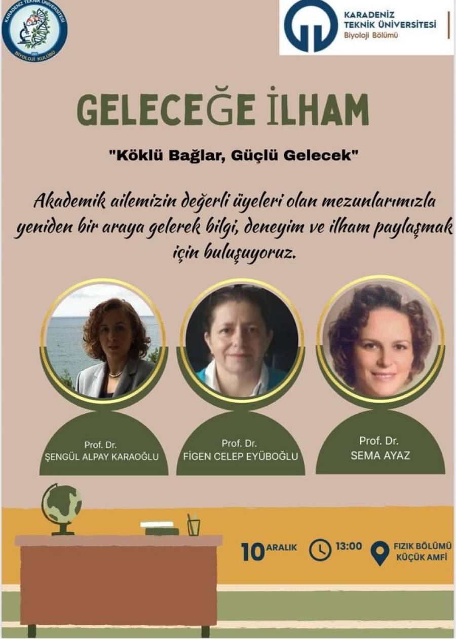 10 Aralık 2025 Fizik bölümü büyük amfide düzenlenen etkinliğe öğrencilerimizin yoğun katılım gösterdiği gözlendi. Konuşmacılarımız Prof. Dr. Şengül ALPAY KARAOĞLU, Prof. Dr. Figen CELEP KARAOĞLU ve Prof. Dr. Sema AYAZ eski bölüm mezunlarımız olarak, mezuniyet sonrasında kariyer gelişimleri için neler yaptıklarını, nasıl yollar izlediklerini, onları en çok zorlayan şeyleri ve bu zorlukların nasıl aşıldığı konularında öğrencilerimizle akademik kariyer gelişim hikayelerini paylaştılar.
