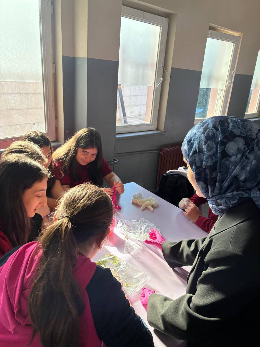 Proje, DNA kavramının soyut yapısı nedeniyle öğrenciler tarafından anlaşılmasını kolaylaştırmak ve DNA’yı somut bir şekilde gözlemlenebilir hâle getirmek amacıyla gerçekleştirilmiştir. Bu kapsamda, 18 Aralık 2025 tarihinde Yol-İş Sendikası Ortaokulu ve Ata Ortaokulu’nda öğrenim gören 7. sınıf öğrencileriyle uygulamalı bir etkinlik düzenlenmiştir.