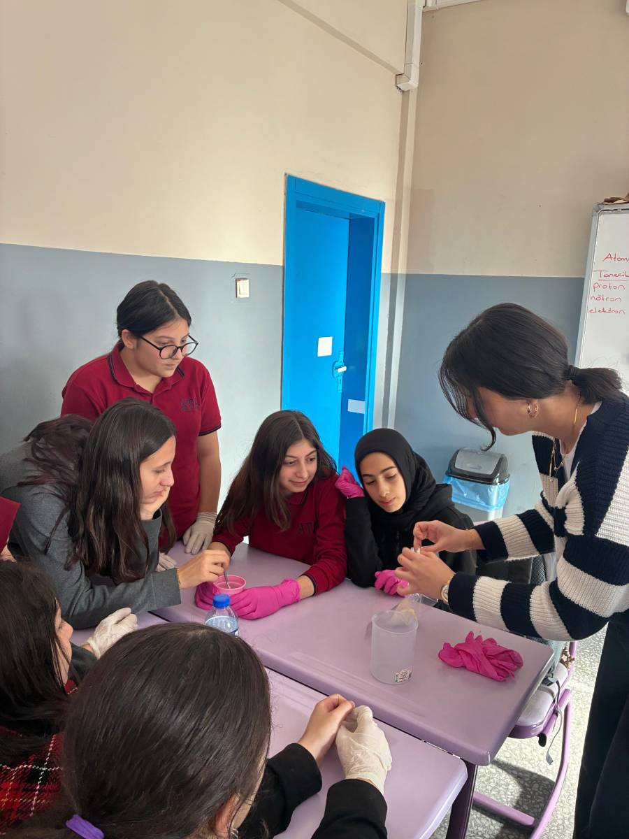 Etkinlikte, çeşitli meyveler kullanılarak DNA izolasyonu gerçekleştirilmiş; DNA’nın yapısı, önemi ve bilimsel çalışmalardaki yeri öğrencilere sade ve anlaşılır bir dille aktarılmıştır. Uygulamalı çalışma sayesinde öğrenciler, bilimsel bir deney sürecini yakından gözlemleme ve aktif olarak deneyimleme fırsatı bulmuştur.