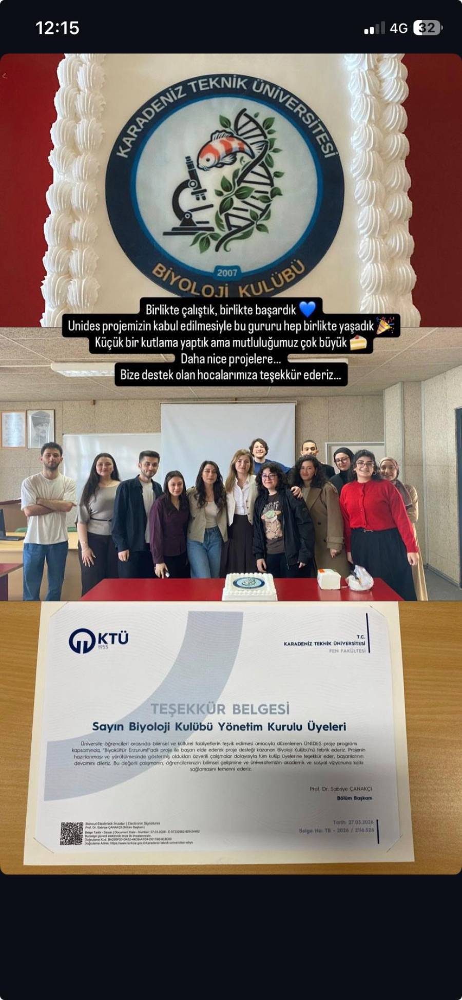 Bölüm öğrencilerimizin "BiyoKültür Erzurum" proje desteği Biyoloji klubü üyeleri tarafından kutlandı.