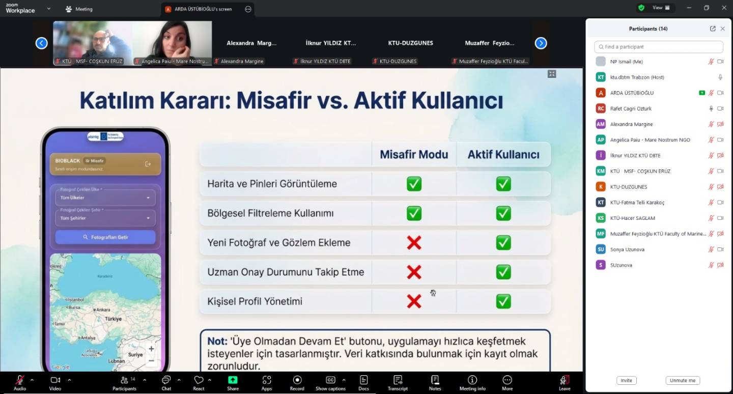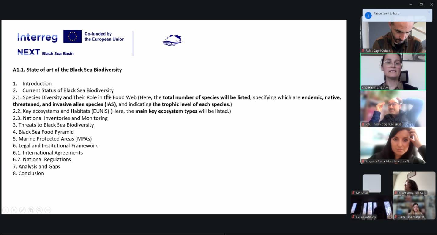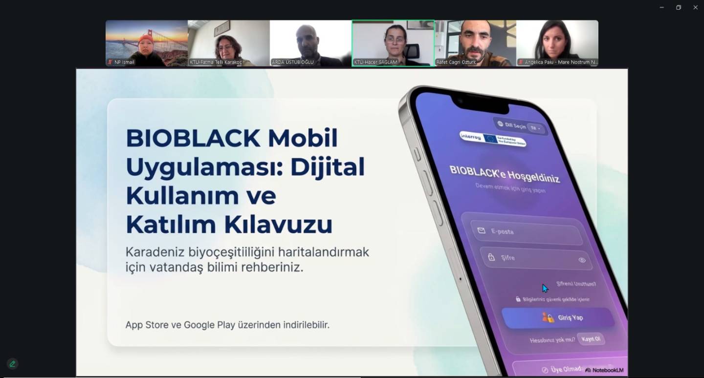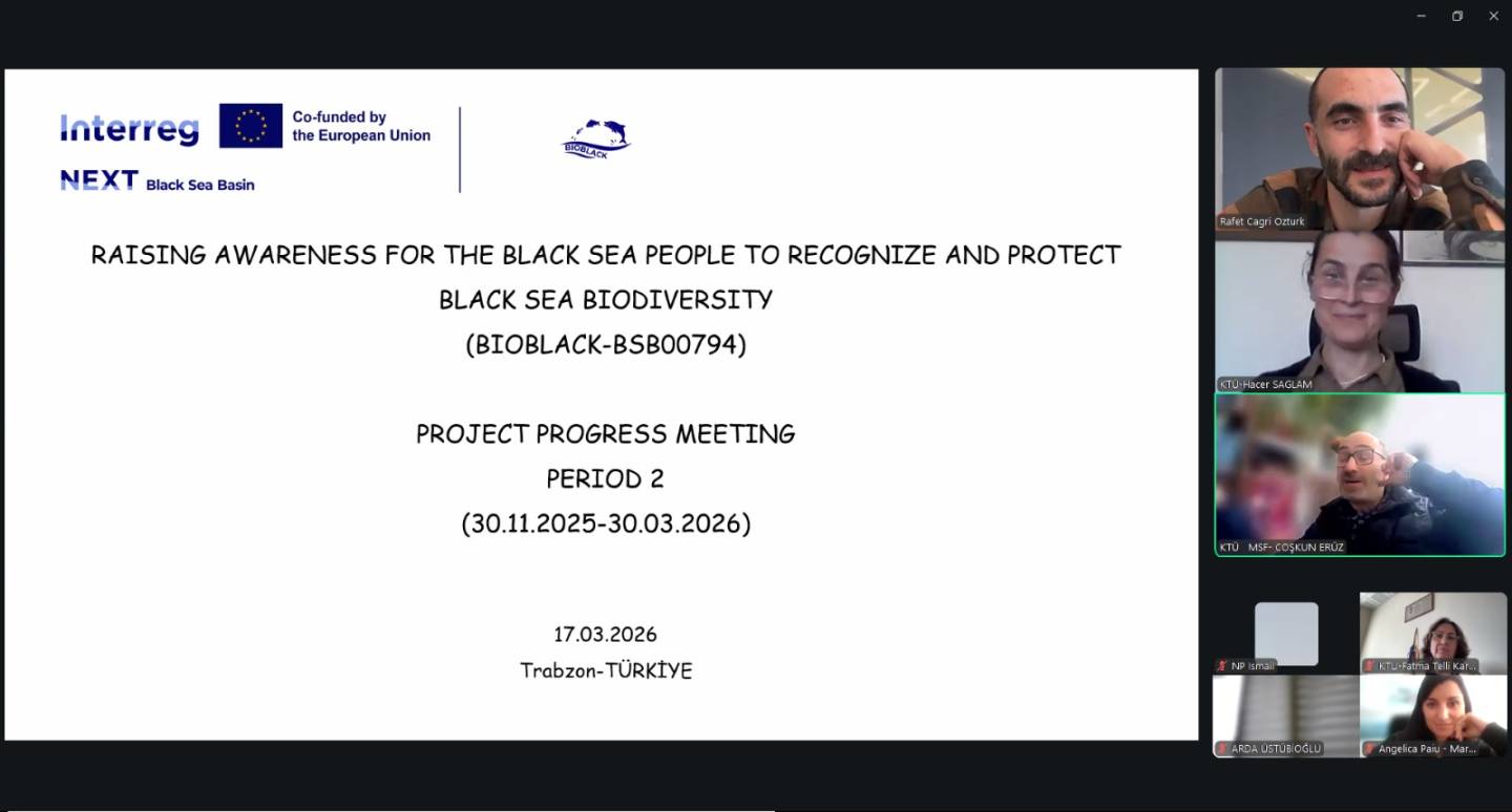 17 Mart 2026 tarihinde, BIOBLACK projesi (BSB00794), Zoom çevrimiçi platformu üzerinden 2. Dönem ortaklar toplantısını gerçekleştirdi. Oturum; lider ortak Karadeniz Teknik Üniversitesi (KTÜ) - Türkiye'den proje personeli ve uzman araştırmacıların yanı sıra, Mare Nostrum (Romanya) ve Balık Kaynakları Enstitüsü (Bulgaristan) ekiplerini bir araya getirdi.